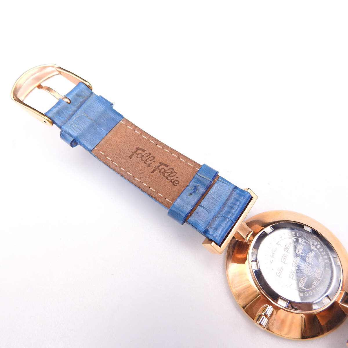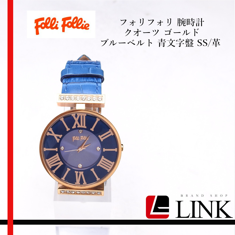 【商品名】【稼働確認済】Folli Follie【フォリフォリ】 腕時計 クオーツ ゴールド ブルーベルト 青文字盤 SS/革