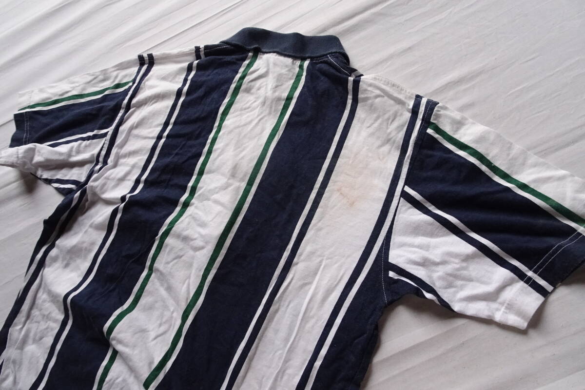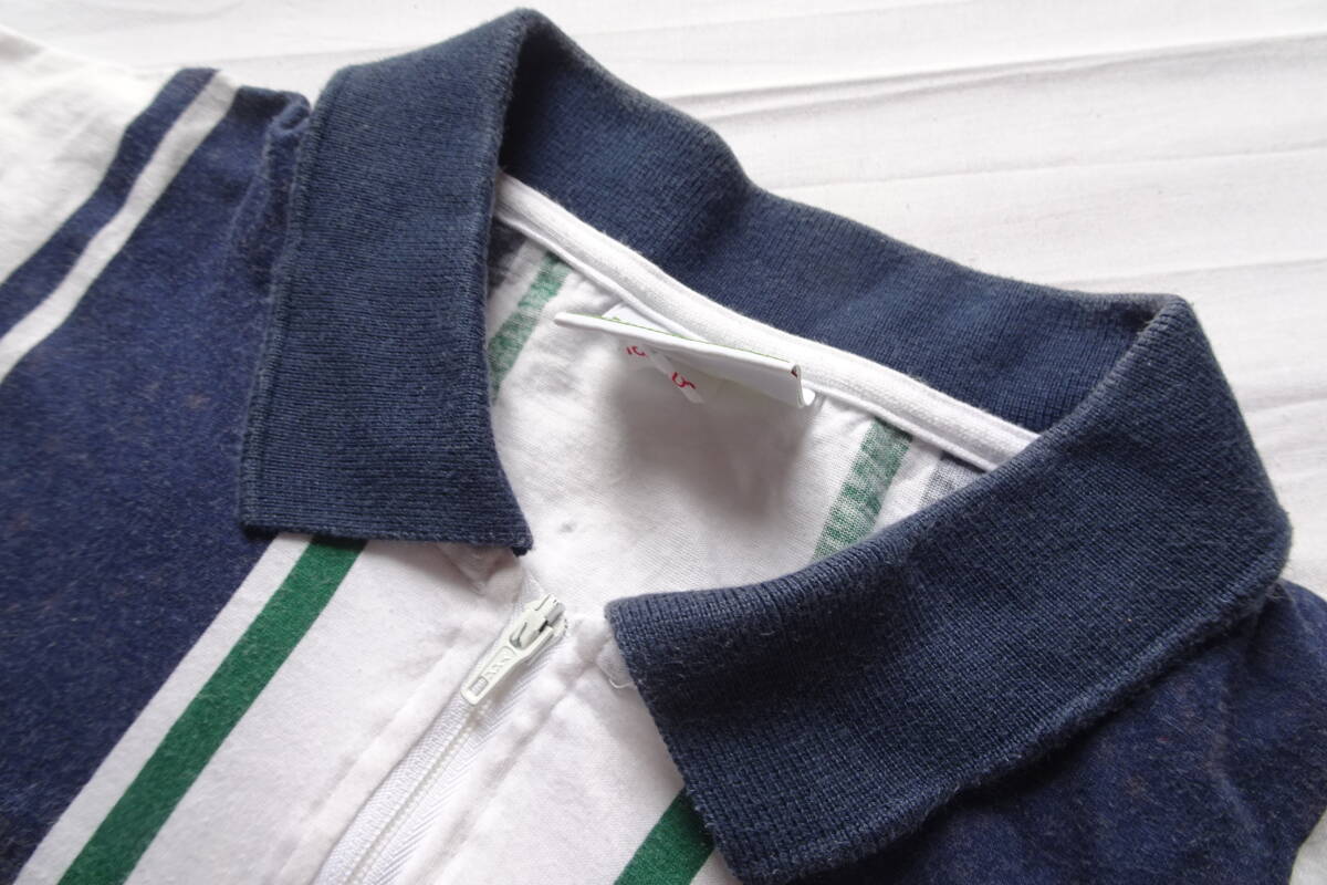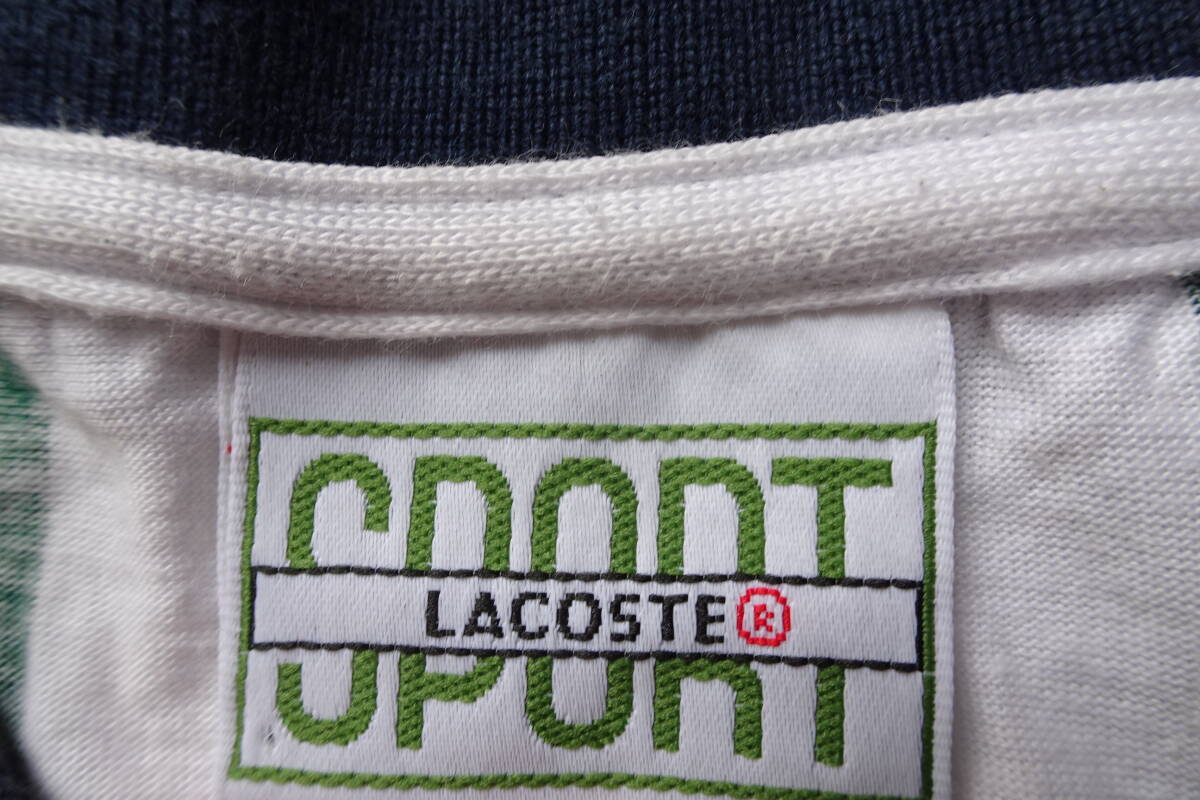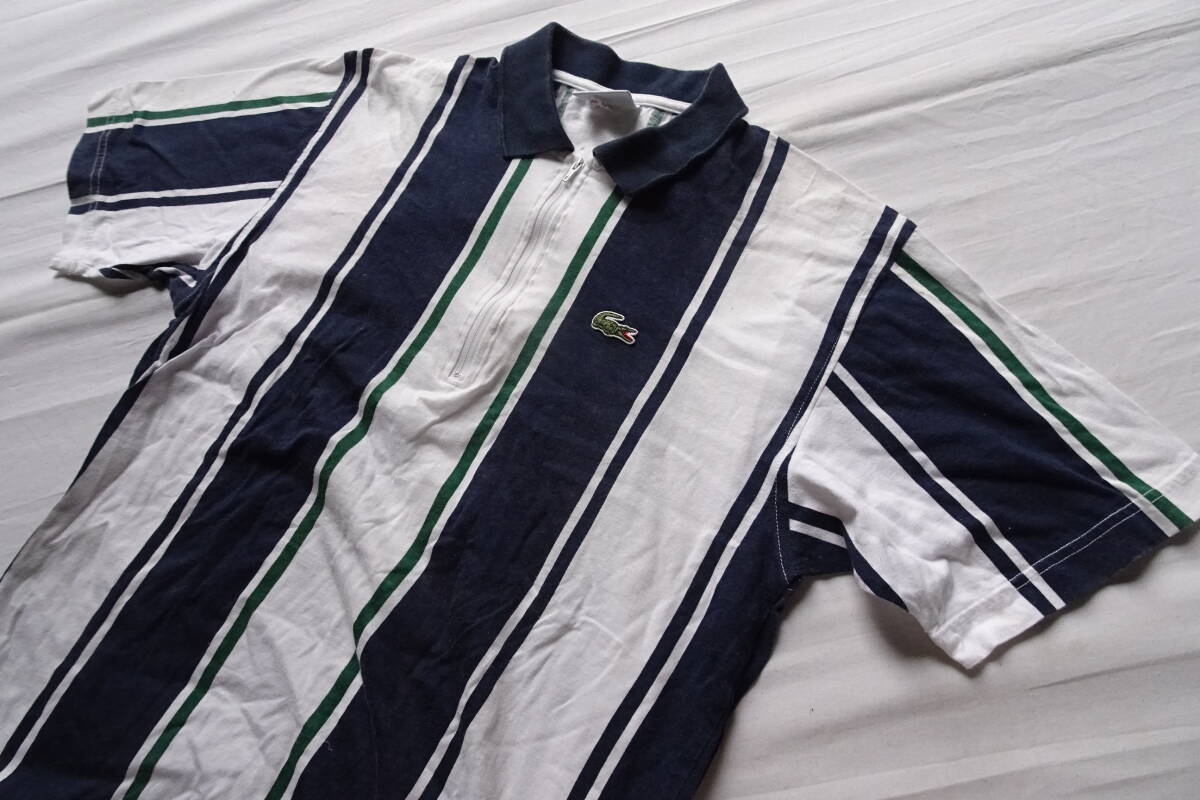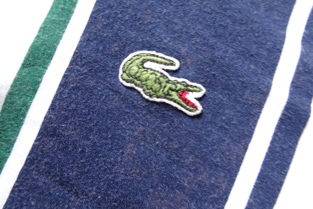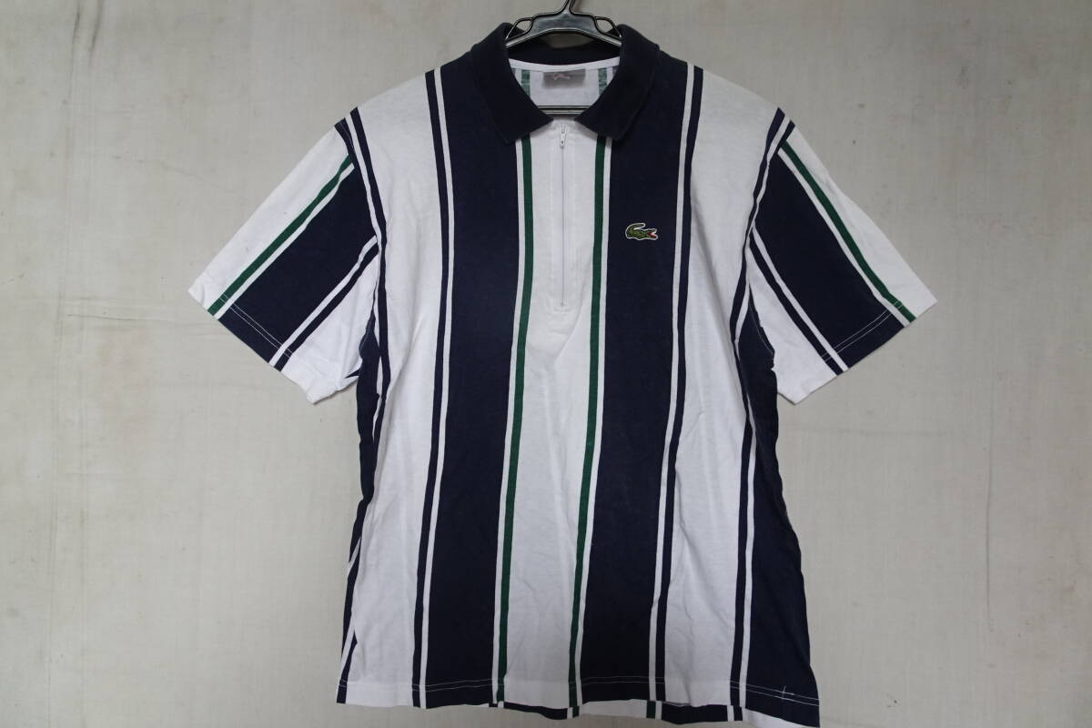 LACOSTE SPORT/ラコステ/襟付半袖シャツ/ポロシャツ/マルチストライプ柄/ハーフジップ/白/ホワイト/紺/ネイビー/サイズ3(9/5R7)