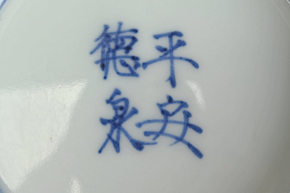 平安 徳泉 染付楼閣山水文 水指 箱付 茶道具