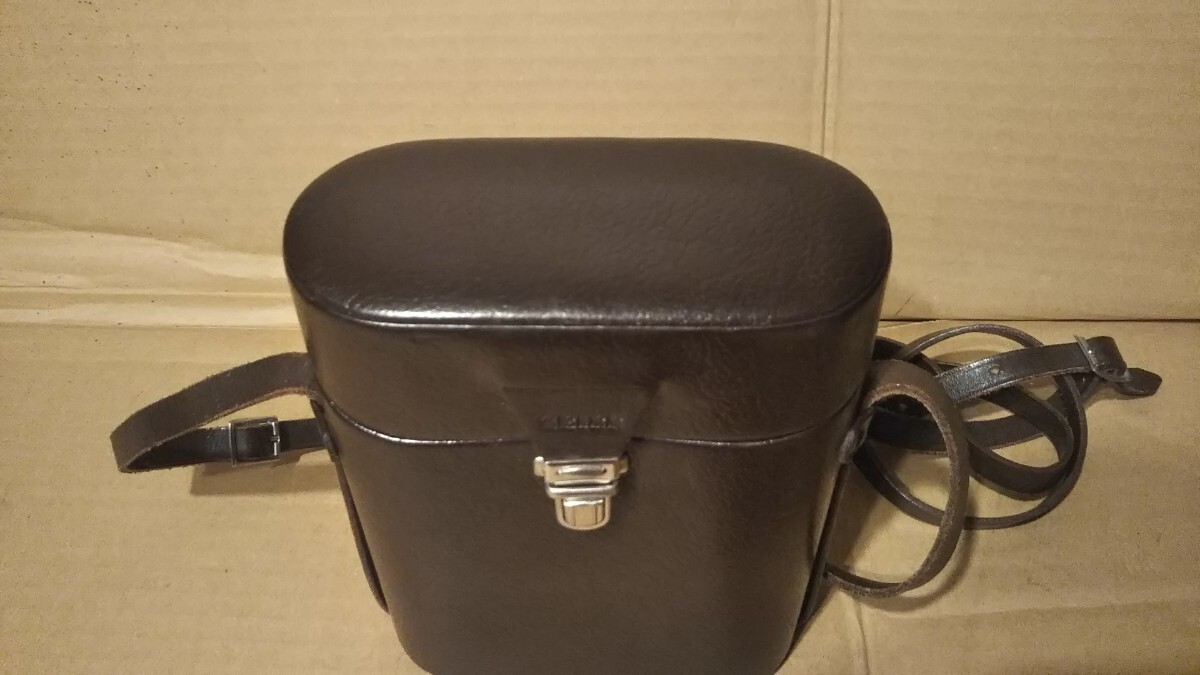 カールツァイスの双眼鏡ケースです。底面にmade in West Germanyの刻印がございます。レザー製品ですが大きな傷み等も見受けられず多少のスレ程度で綺麗な状態です。型崩れや金具の錆びなどは無さそうです。横幅13cm、縦17cm 、厚み6cm位です。宅急便60サイズにて発送致します。
