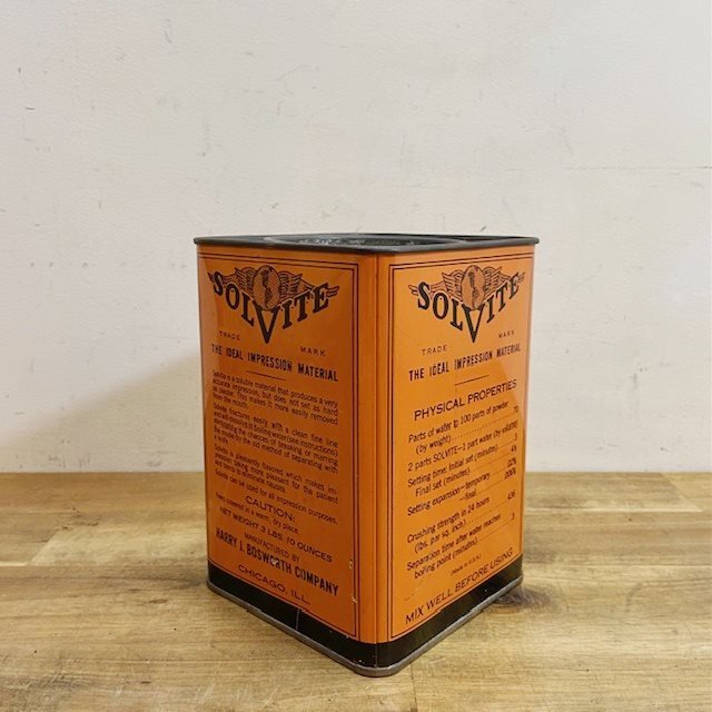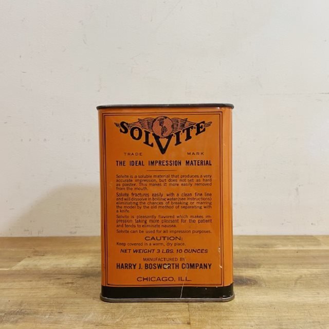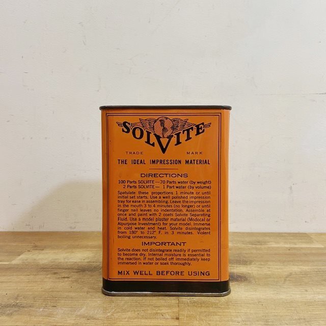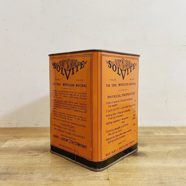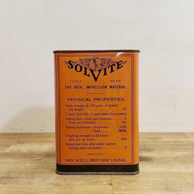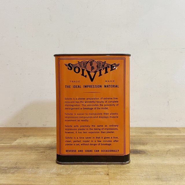 アメリカで買い付けた歯科印象材(歯形を取る為の物)が入れられていた古い缶です。
