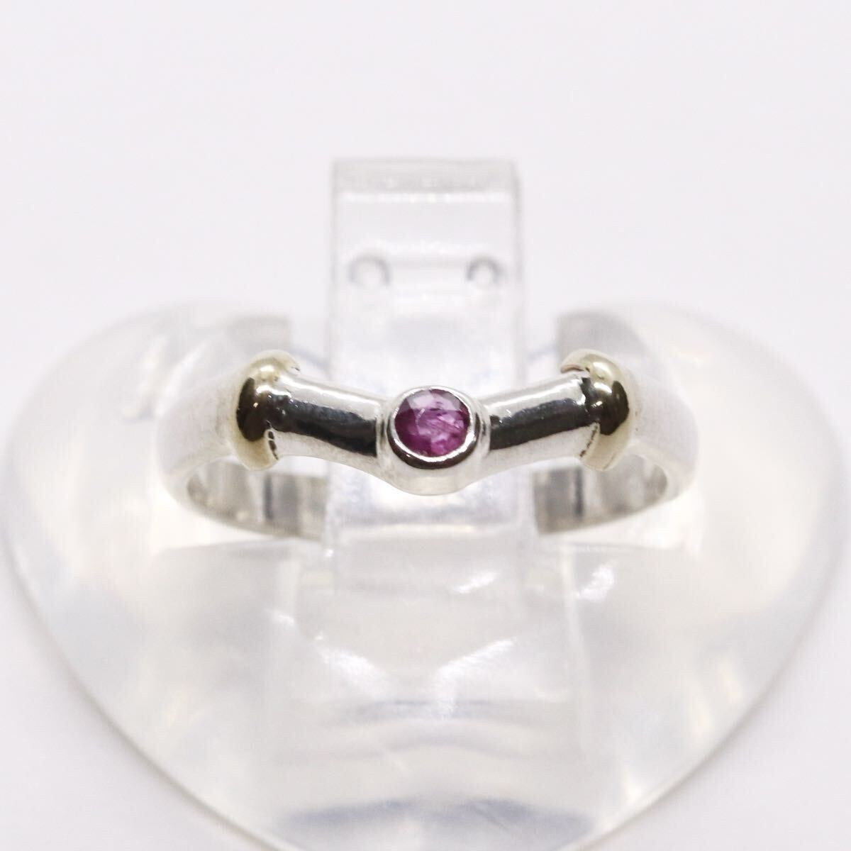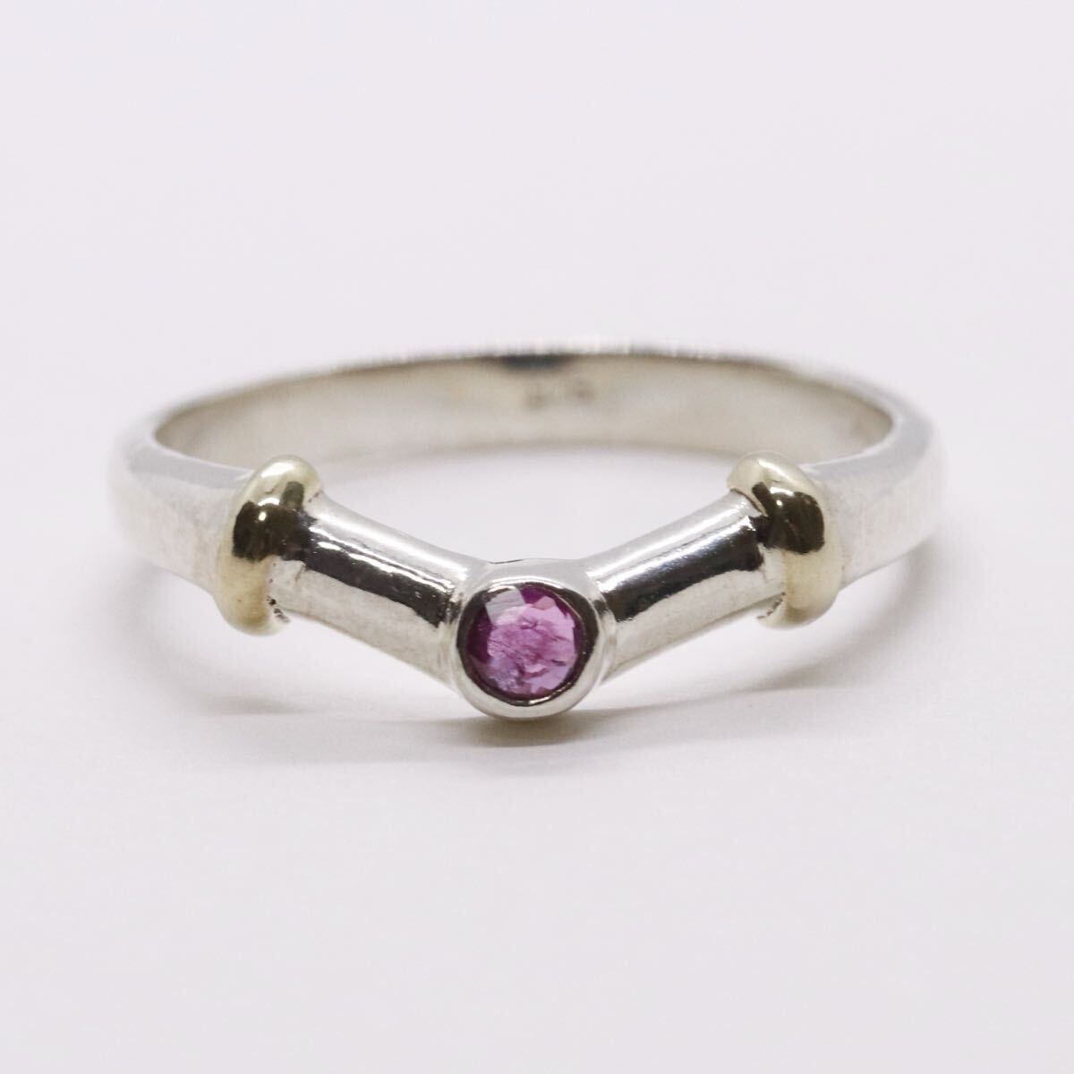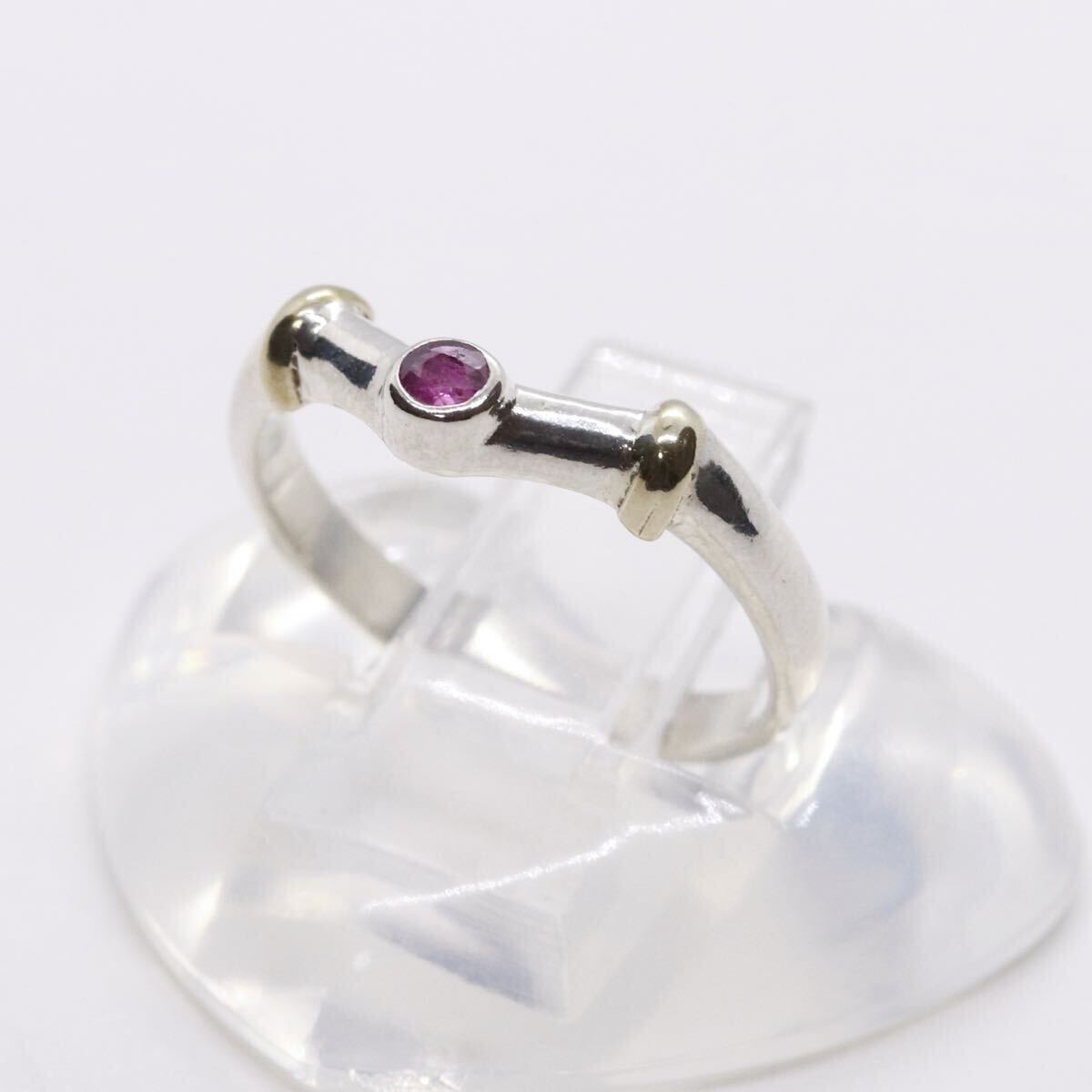 ルビーをあしらったシルバー925×ゴールドのリングです。