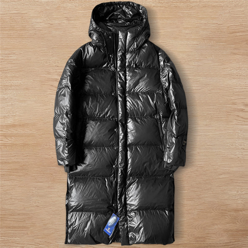 W9827-2XL/黒色系 「軽くて暖かい!」DCKMANY新品 メンズ 超ロング丈 ダウンジャケット ダウン90% 厚 軽量 防寒 保温 フード付き アウター