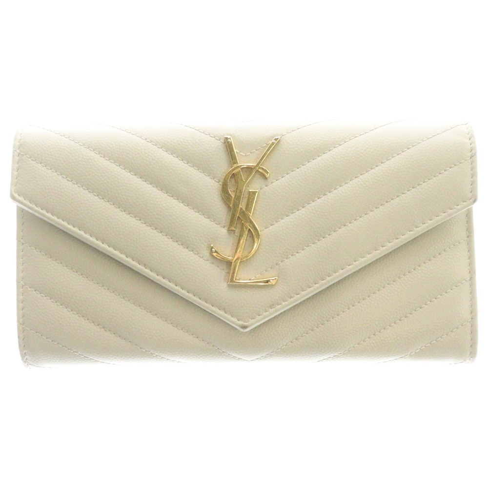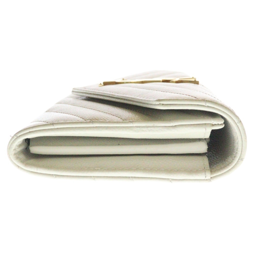 SAINT LAURENT PARIS サンローランパリ カサンドラ Vステッチ ラージフラップ レザーロングウォレット 長財布 GUE372264 ベージュ