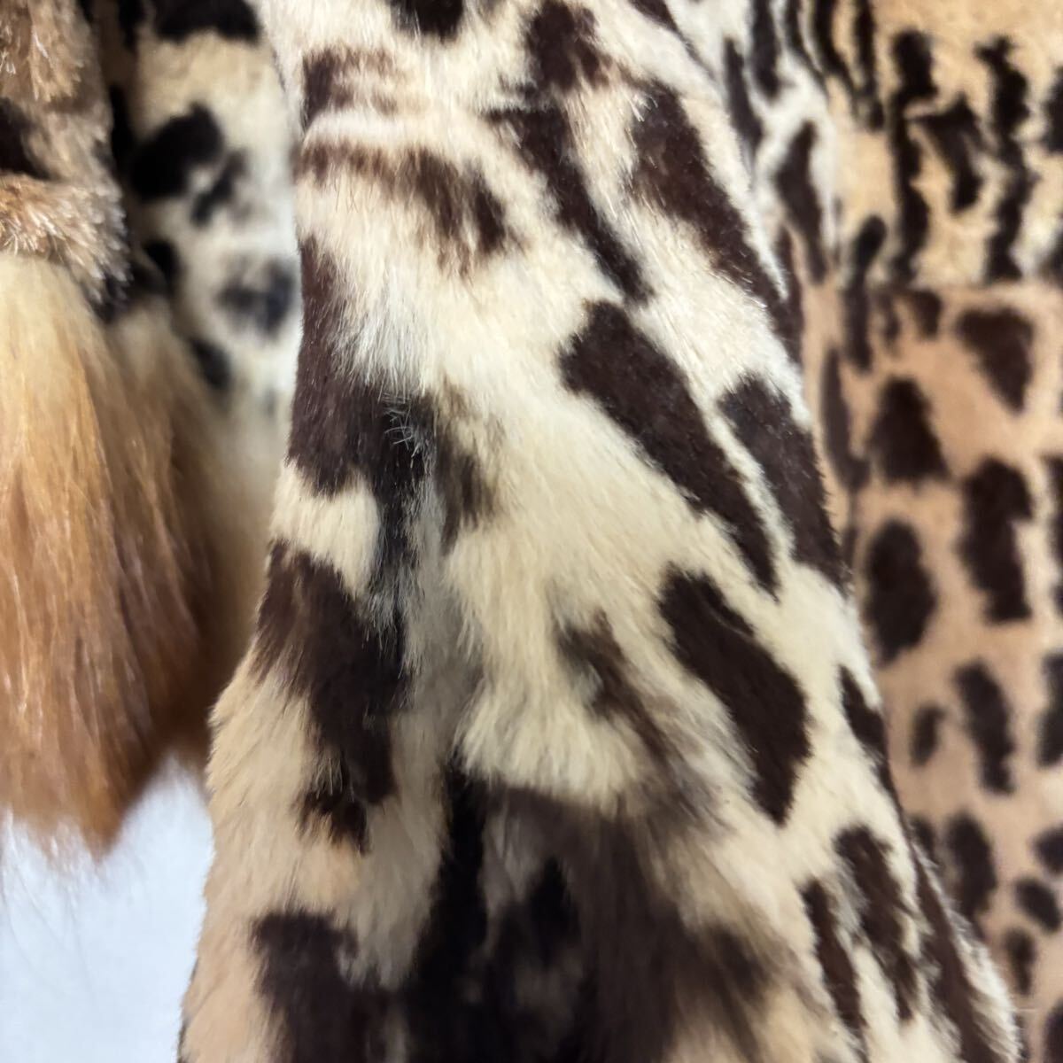 柔らかく滑らかな肌触り良いリアルファーでレオパードとボリュームあるファーの組み合わせがインパクト大で七分袖もフレアするシルエットが可愛い一枚です。