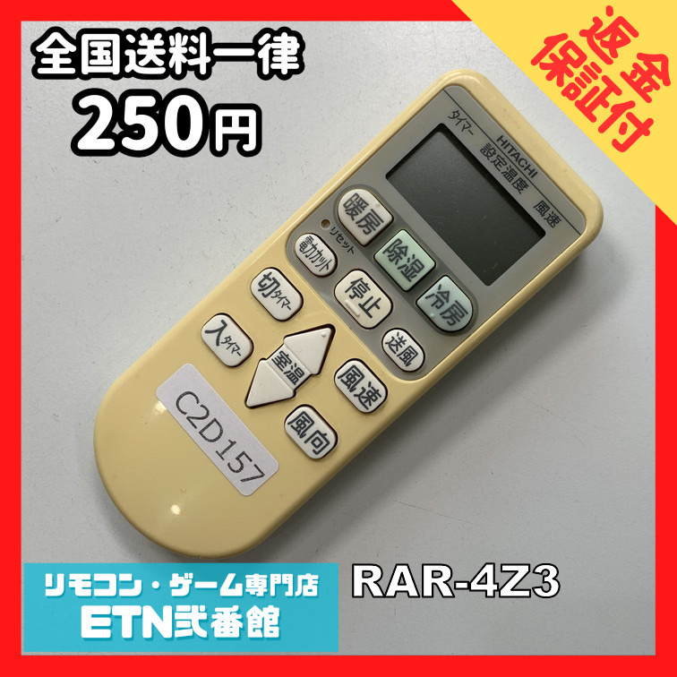 C2D157 【送料250円】エアコン リモコン / 日立 ヒタチ HITACHI RAR-4Z3 冷房 暖房 動作確認済み★即発送★