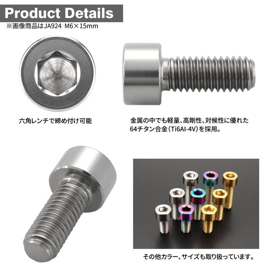 | 64チタン合金 スリムヘッド キャップボルト 金属の中でも軽量、高剛性、対候性に優れた64チタン合金(Ti6AI-4V)を採用。 ドレスアップにも最適なボルトです。 |