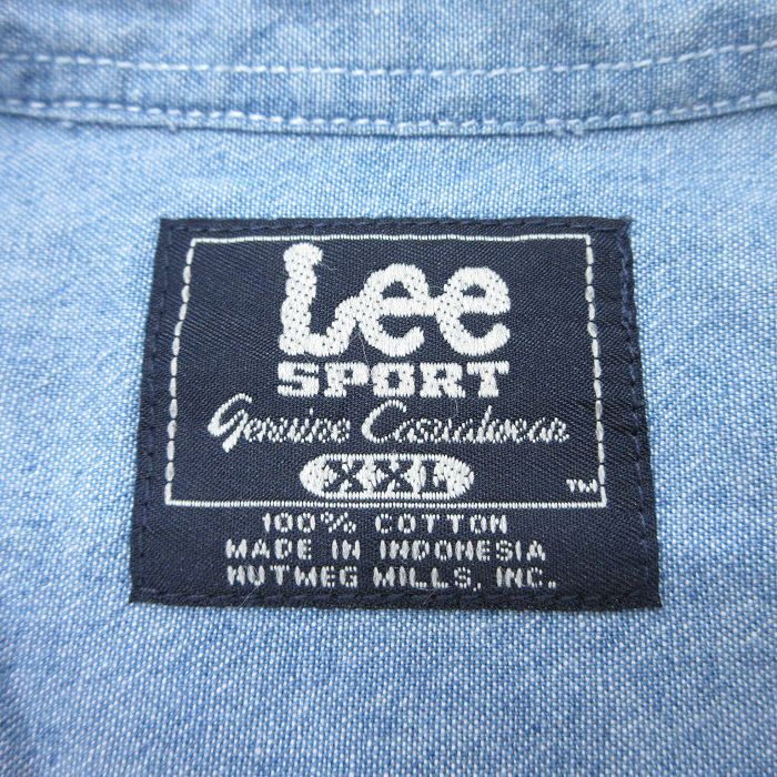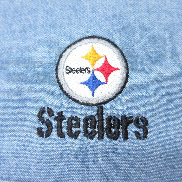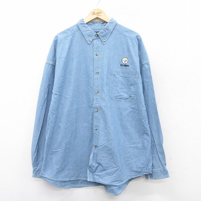 【商品名】 XL★古着 リー Lee 長袖 シャツ メンズ NFL ピッツバーグスティーラーズ 大きいサイズ ロング丈 コットン ボタンダウン 紺 デニム アメフト スーパーボウル