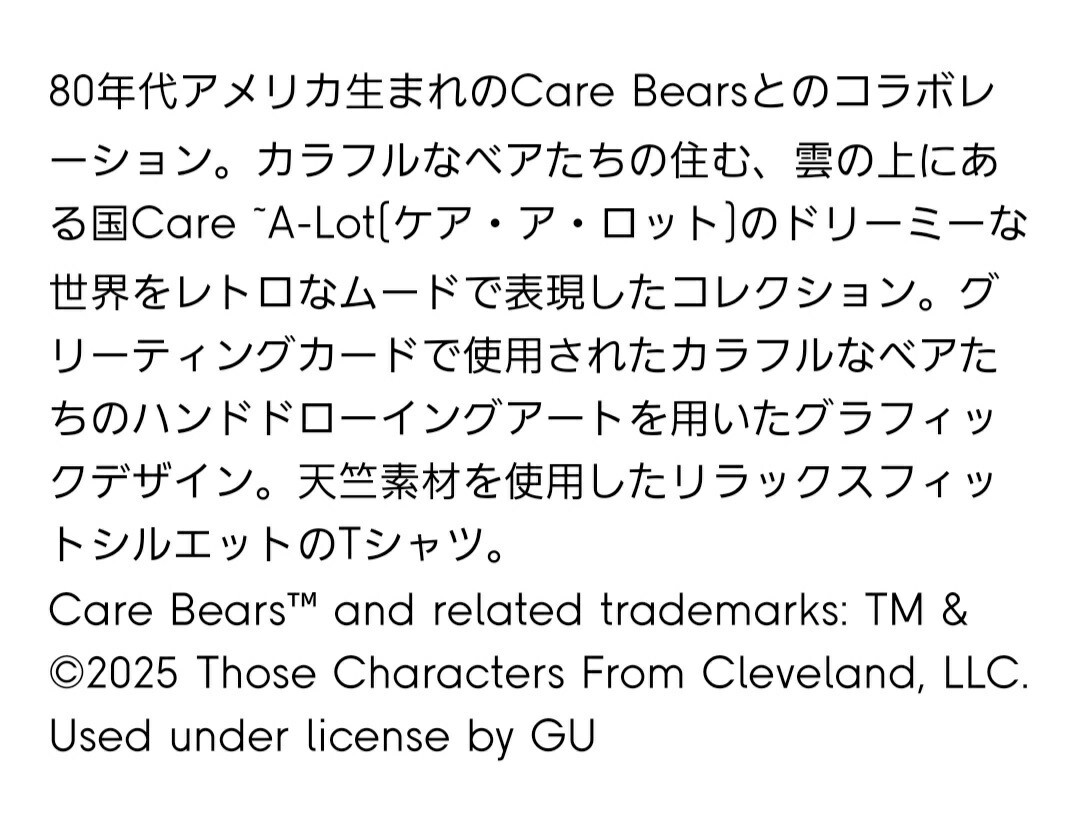 GUとケアベアコラボのグラフィックTシャツを未使用タグ付き保管しています。