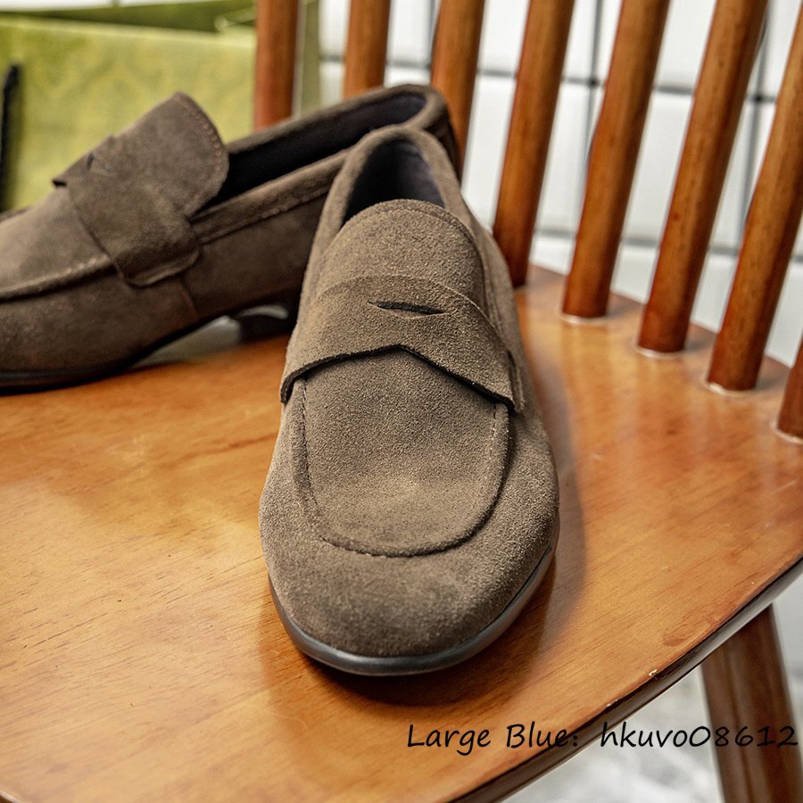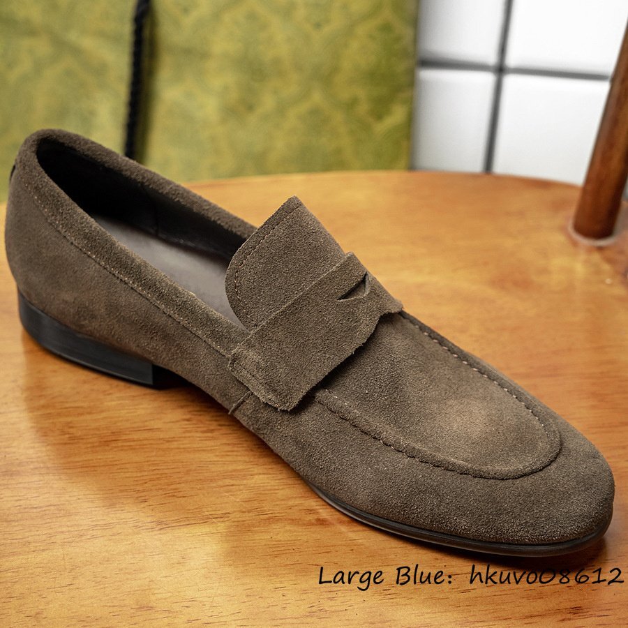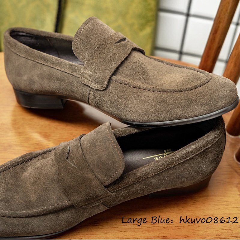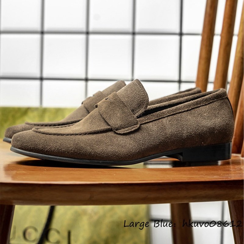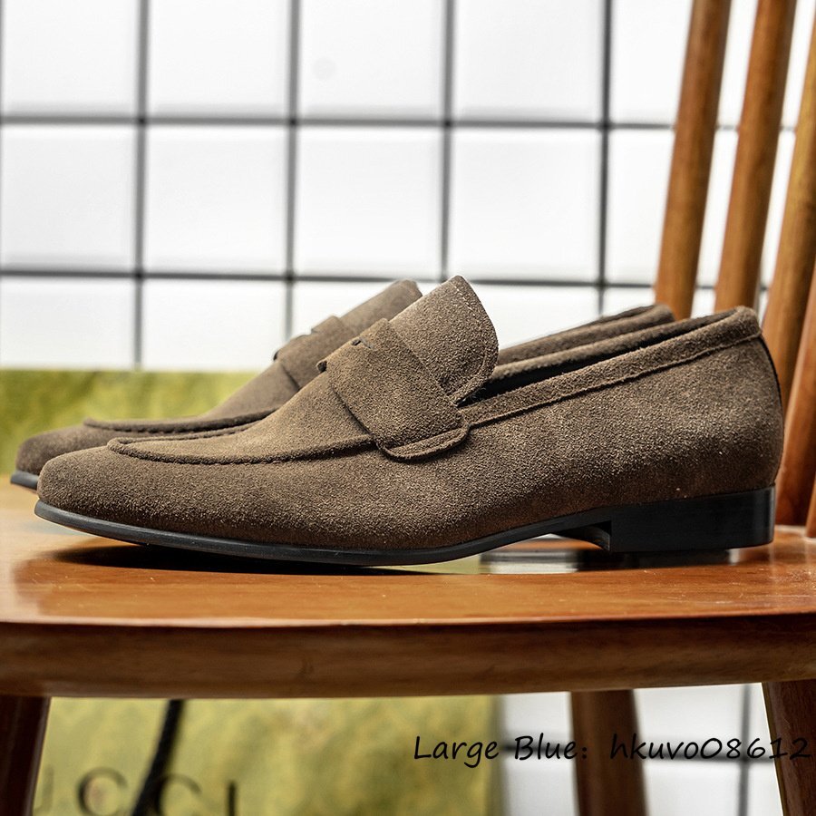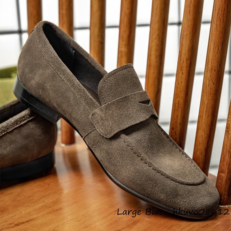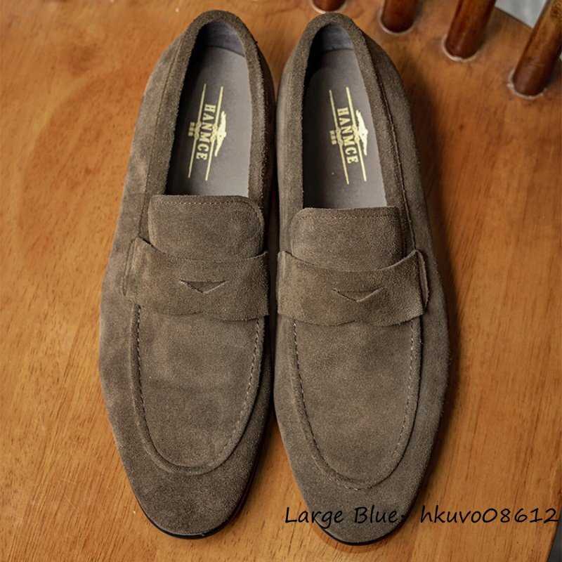 入手困難◆スリッポン 職人手作り 本革 レザーシューズ ビジネスシューズ スエード革 ローファー 本牛革 革靴 紳士靴 ドライビング 25.0cm