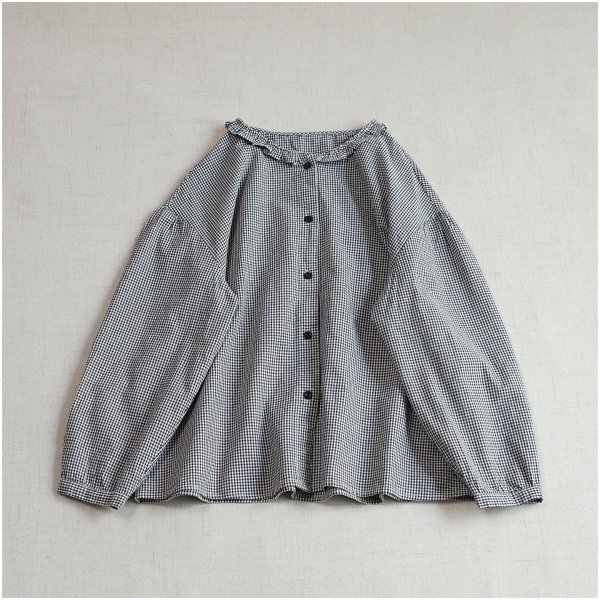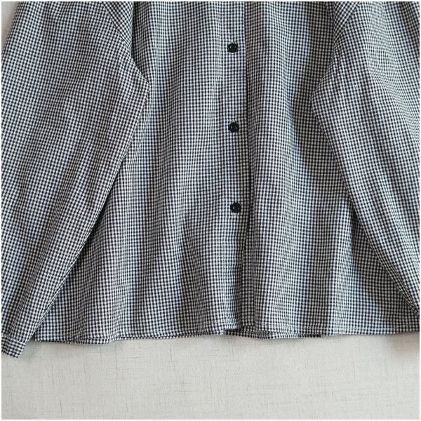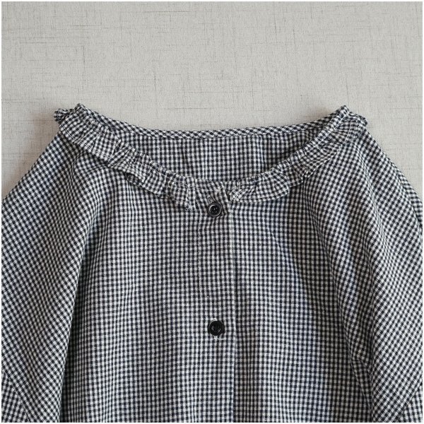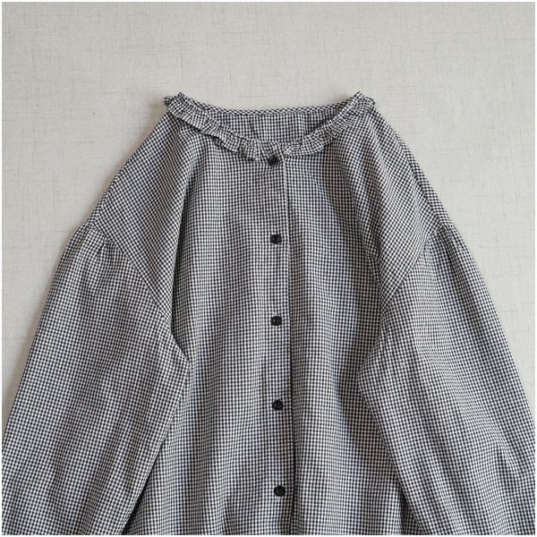 m 2509 トップス チュニック ワイシャツ 綿100% ゆったり フリーサイズ ナチュラル 前開け ギャザー襟 チェック柄3