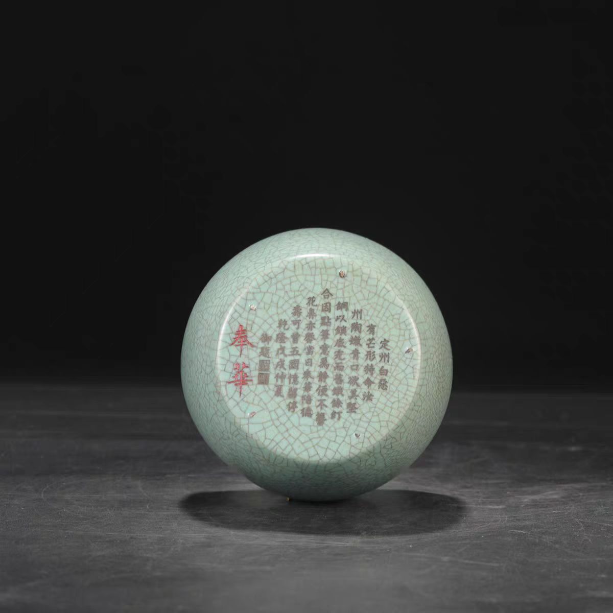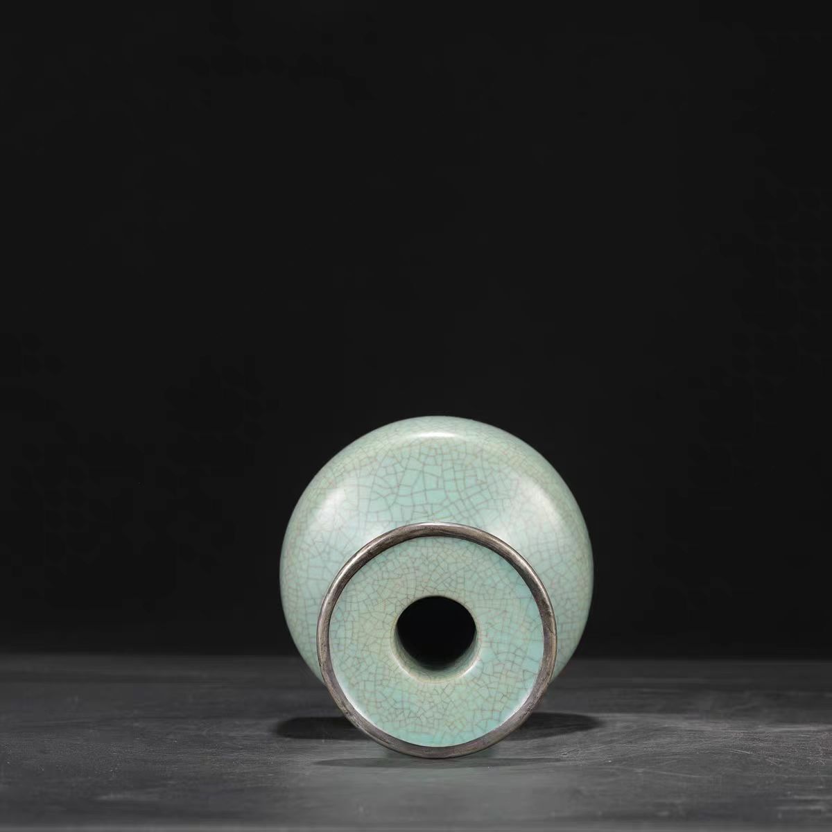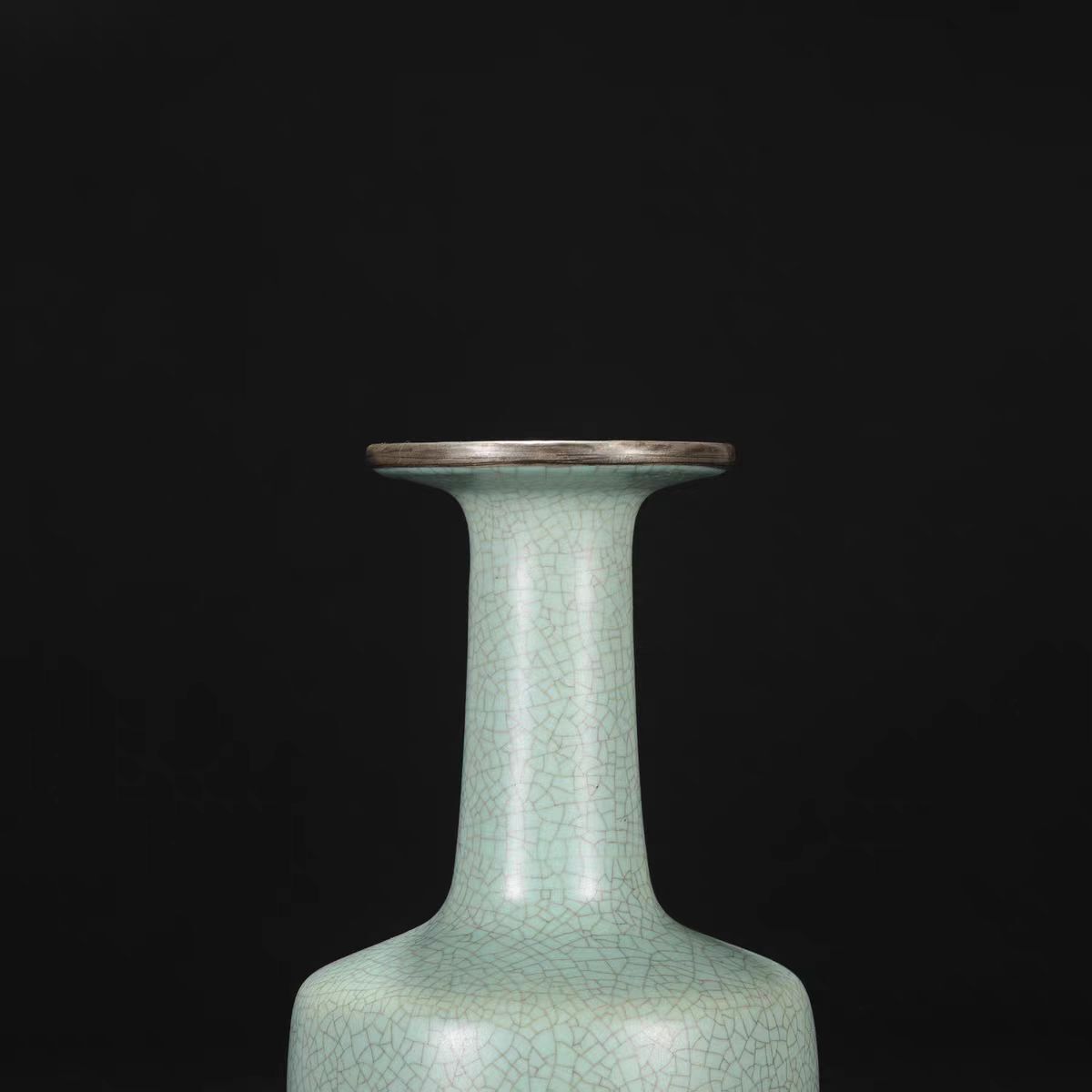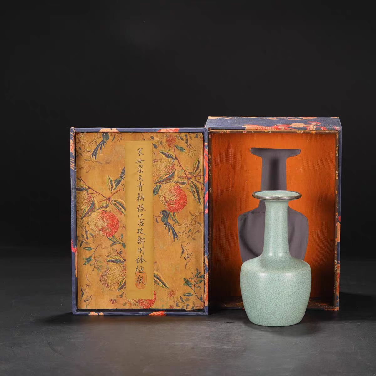 宋時代 汝窯 古陶磁器 天青釉 銀口 乾隆御題 刻詩 棒槌瓶 賞瓶 磁器 陶芸 擺件 時代物 古董品 骨董 旧家蔵出 唐物 中国古玩 古美術品