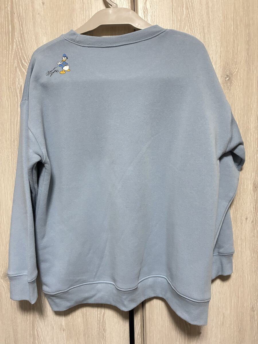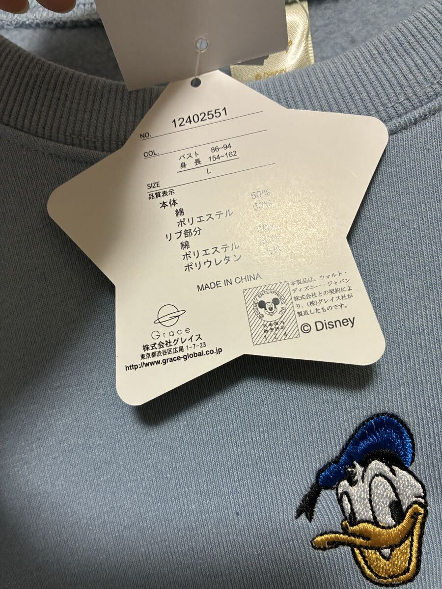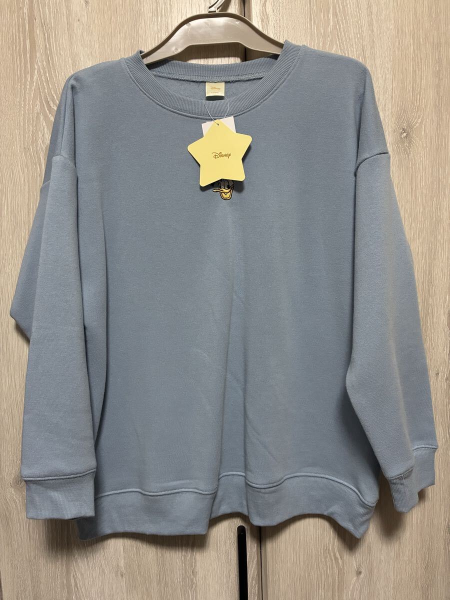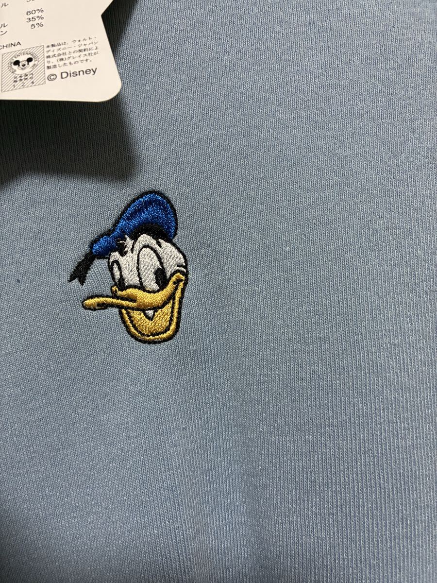 ドナルドダックの刺繍が施されたライトブルーのスウェット。