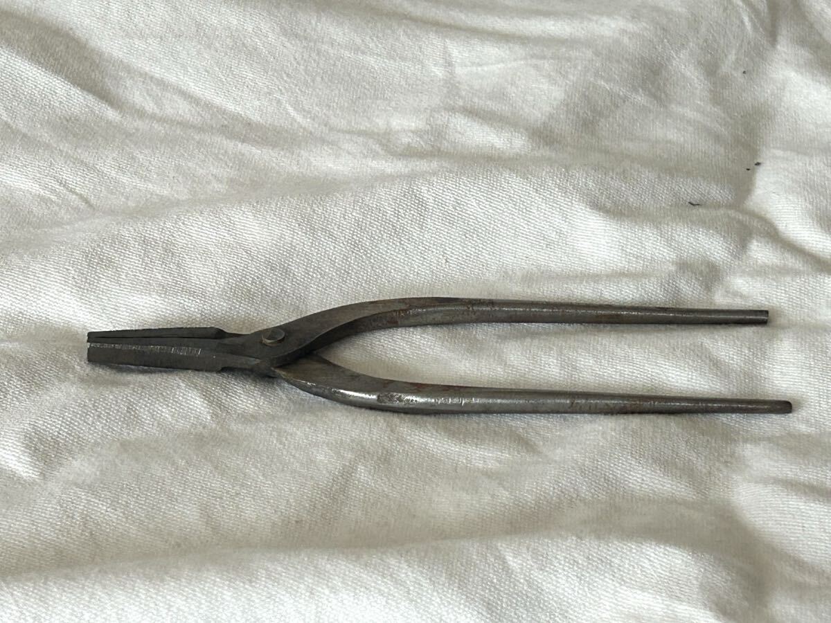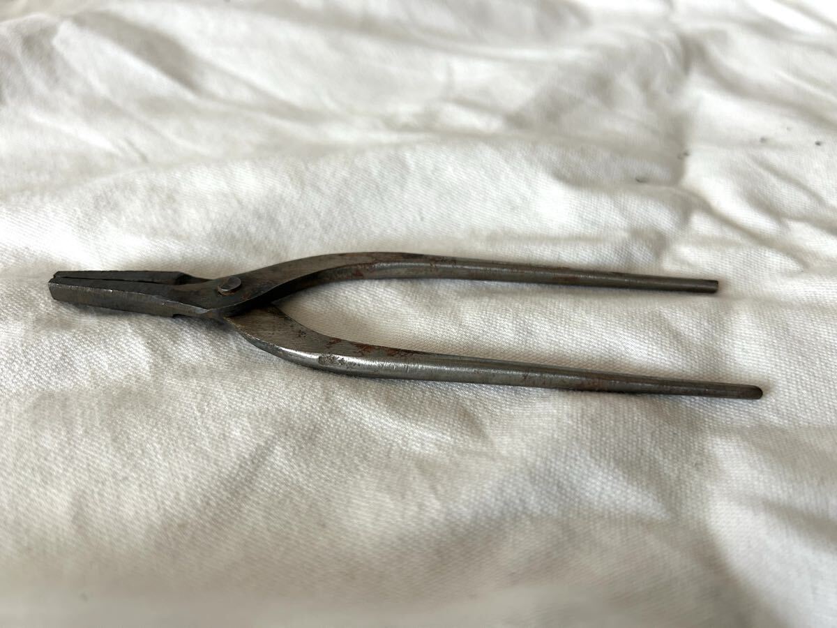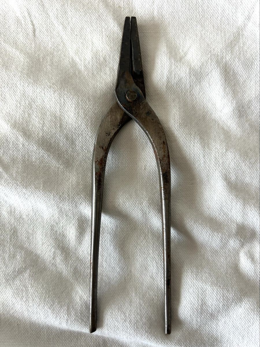 金属製の中型やっとこ、平面型先端で精密作業に最適。