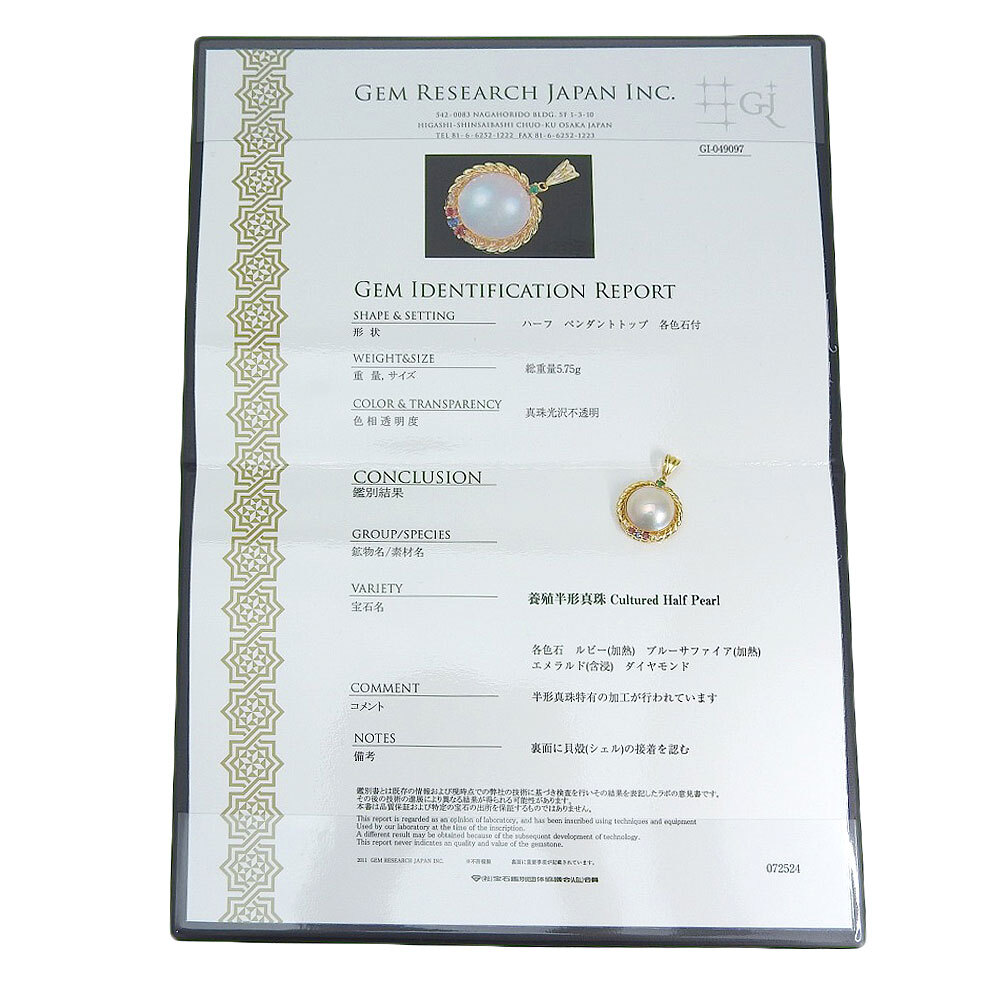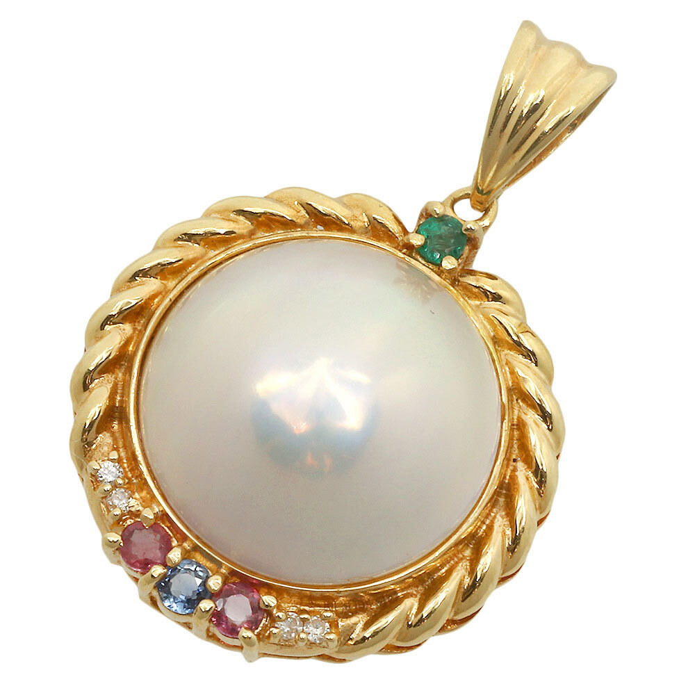 素材 | K18YG 石:マベパール約15.4mm メレルビー メレサファイヤ メレエメラルド メレダイヤモンド |