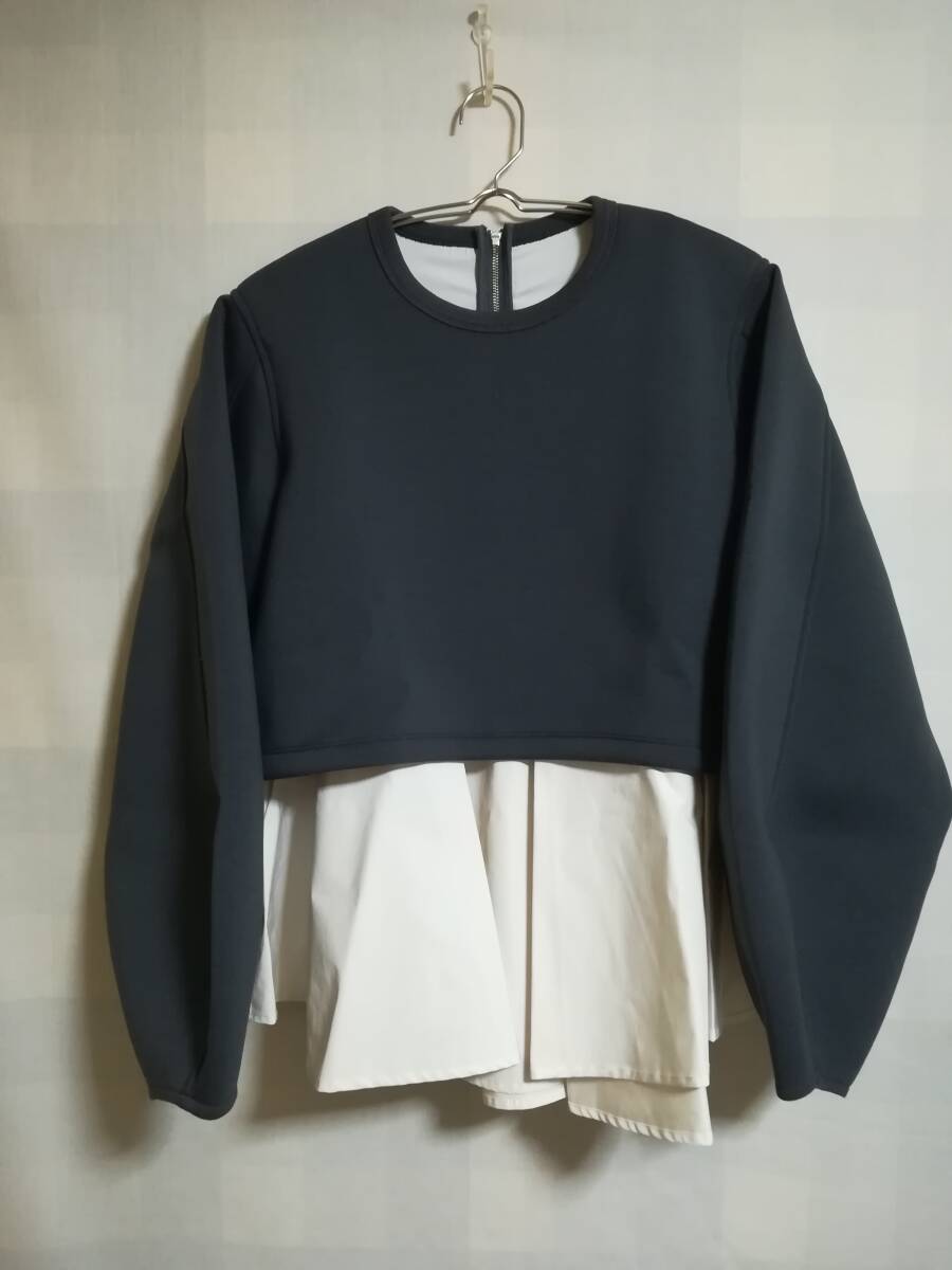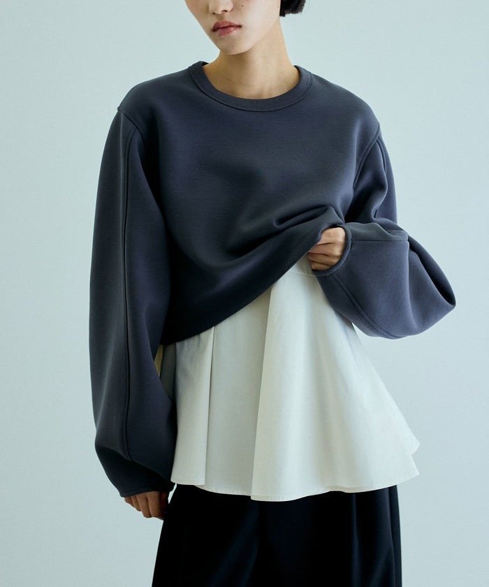 身頃とペプラムを別々に縫製し、レイヤードしている様なデザインに落とし込んだチュニック。フォルムスリーブや立体的なペプラムのフレア感が魅力的な1枚。