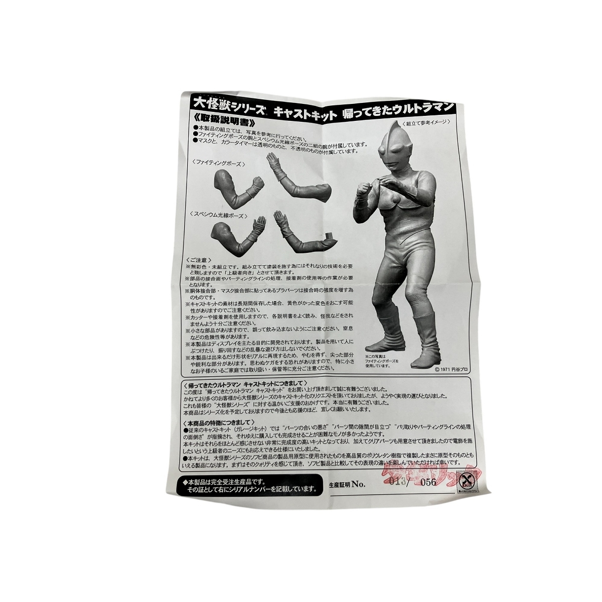 | 【希少・未組立】エクスプラス 大怪獣シリーズ 帰ってきたウルトラマン キャストキット エクスプラスの大怪獣シリーズから、昭和ウルトラマンシリーズ第4作目『帰ってきたウルトラマン』の未組立ソフビキットです。 本キットは、初代ウルトラマンの意匠を受け継ぎつつ、力強さとスマートさを兼ね備えた帰ってきたウルトラマンの魅力を忠実に再現しています。マスクのシャープな造形や、筋肉の隆起が際立つボディなど、細部にわたるこだわりが光る逸品です。 未組立品のため、ご自身の感性で塗装や組み立てをじっくりと楽しむことができます。特撮ファン、ガレージキット愛好家の方にも心からお勧めしたい一品です。 RARE Unassembled X-Plus "Great Monster Series" The Return of Ultraman Cast Kit This is a rare, unassembled soft vinyl (sofubi) kit of the hero from the 4th installment of the Ultraman series, The Return of Ultraman. The kit faithfully reproduces the hero's design, which blends the classic look of the original Ultraman with a more powerful and streamlined feel. From the sharp mask to the detailed musculature of the body, every aspect of the suit is meticulously sculpted. Since the kit is unassembled, you'll have the joy of building and painting it yourself, allowing you to bring this iconic hero to life. This is a must-have for any serious collector of tokusatsu figures. 【初期保証】 ReReでは商品説明や画像では確認できない不備や破損が見られた場合は、 商品到着(お引渡し)日を含んだ7日以内に取引メッセージよりご連絡いただけますと 速やかに返品返金対応致しますので、安心してご購入頂けます。 【状態について】 ・コレクターの前オーナー様の放出品となります。 ・コレクション品となりますので、 外箱に保管に伴う経年劣化がある場合がございます。 お送りさせていただく商品は画像のものとなるため、画像をご確認下さいませ。 ※箱に入っている状態での保管でしたが、日焼け等の色の変化は不明でございますので、画像を参照くださいませ。 ※未組立のため、未使用として出品いたしますが、パーツの欠品の有無は未確認のため、 画像を参照くださいませ。 【動作について】 前オーナー様がコレクションにて保管しておりました。 本体は綺麗な状態でございます。 初期保証付きですので、ご安心してお買い求め下さいませ! 【付属品】 画像参照 付属品に関しては画像にてご確認いただけるものが全てとなっております。 ※一部商品は在庫自動連携しているため、ご購入後に在庫がない場合がございます。 ご了承の上、ご購入くださいませ。" |