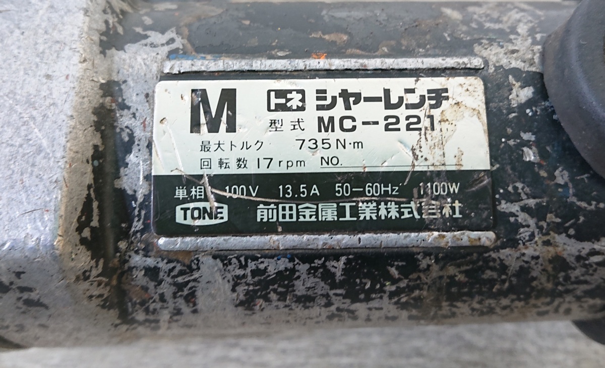【 TONE / トネ 】 MC-221 シャーレンチ 100V ※配線補修あり