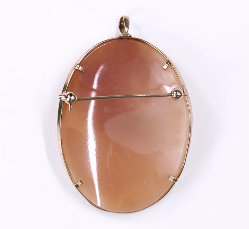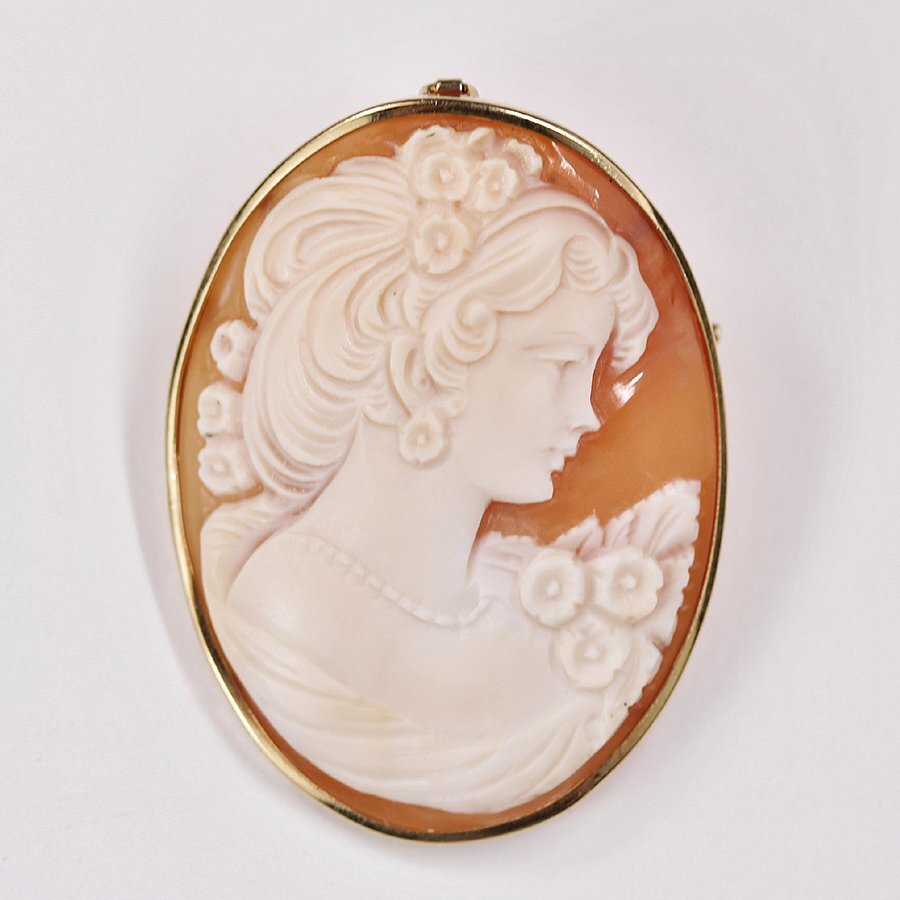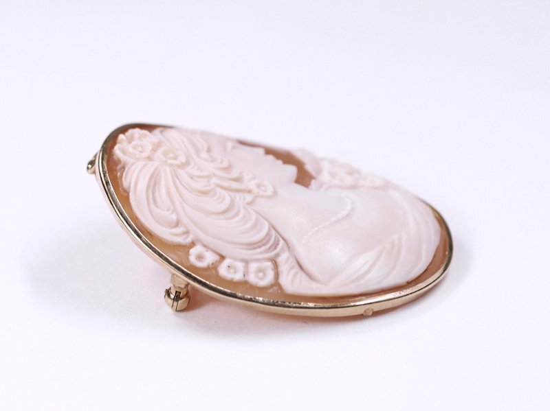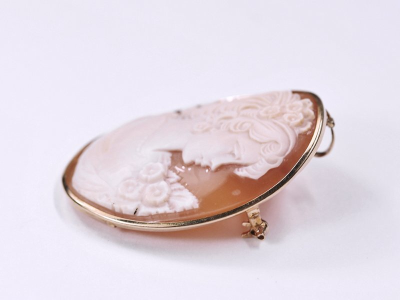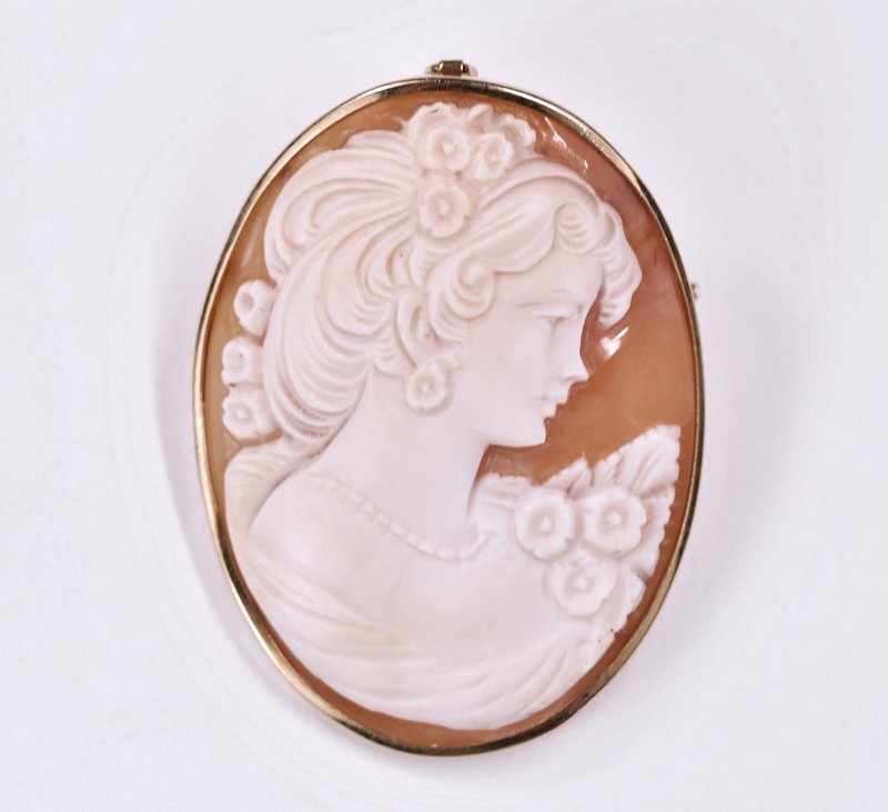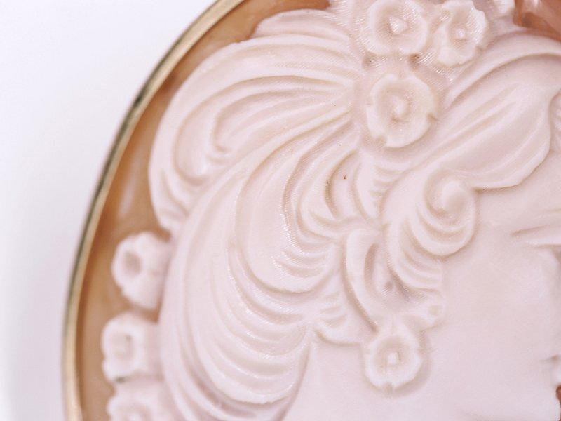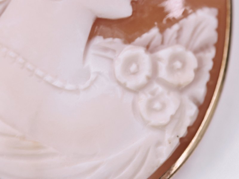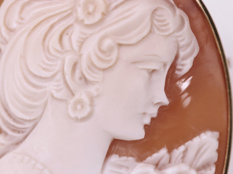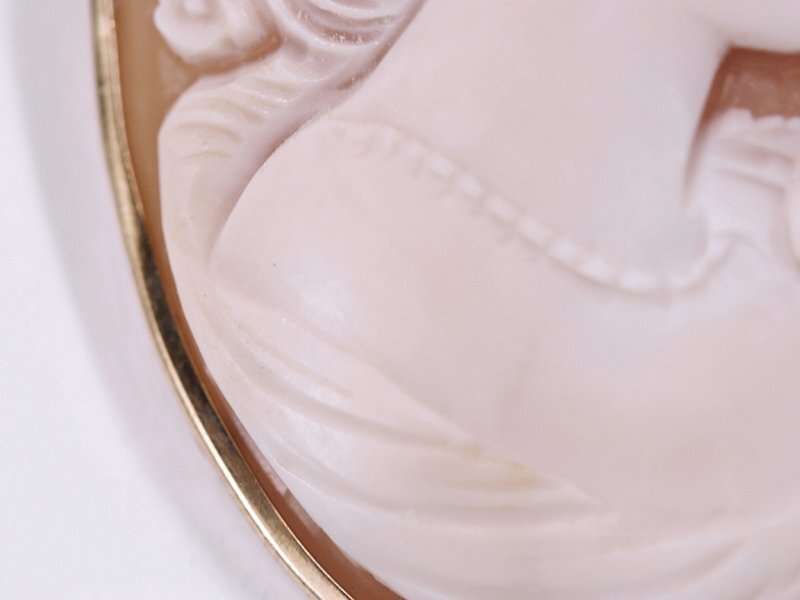 | 女性横顔のレリーフ彫刻されたシェルカメオ。 |
