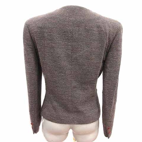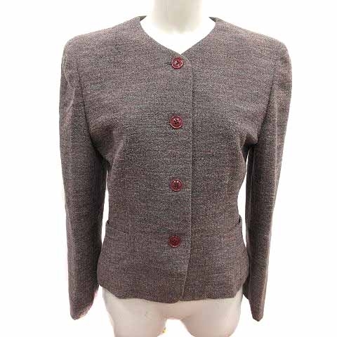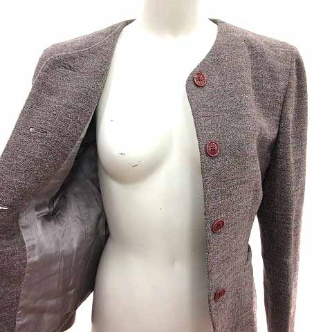 トゥモローランド TOMORROWLAND ノーカラージャケット ツイード 総裏地 ウール 38 M 茶 ブラウン /YK レディース