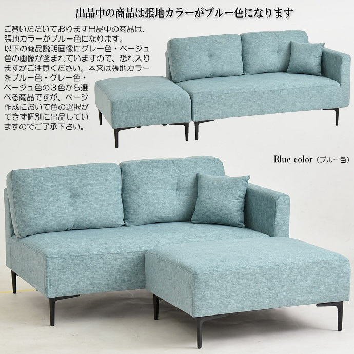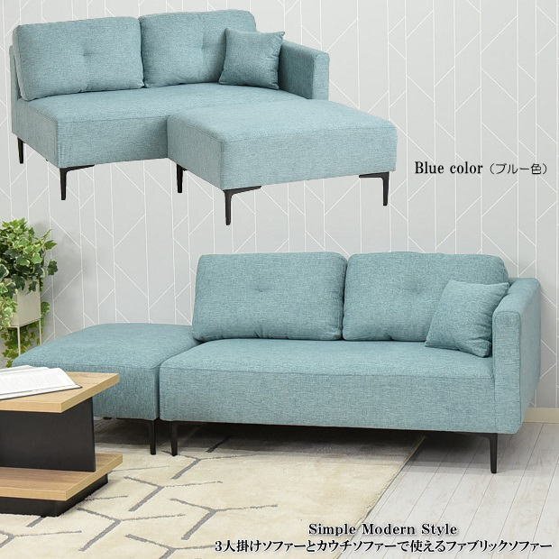 | 【商品名】 | 3人掛けソファーとカウチソファーで使えるスツール付片肘2人掛けソファー (ブルー色) |