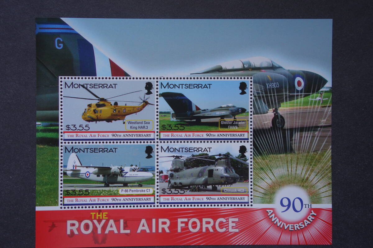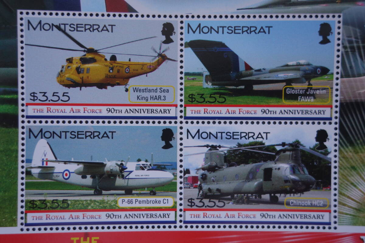 外国切手:(英国海外領土)モントセラト切手 「英国空軍90年」4種m/s 未使用
