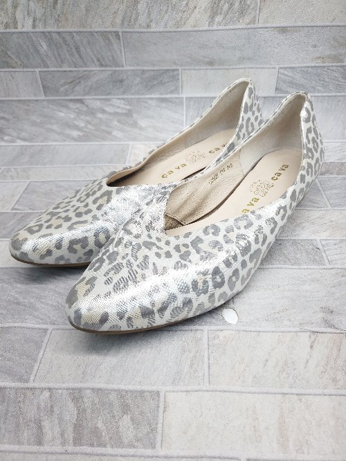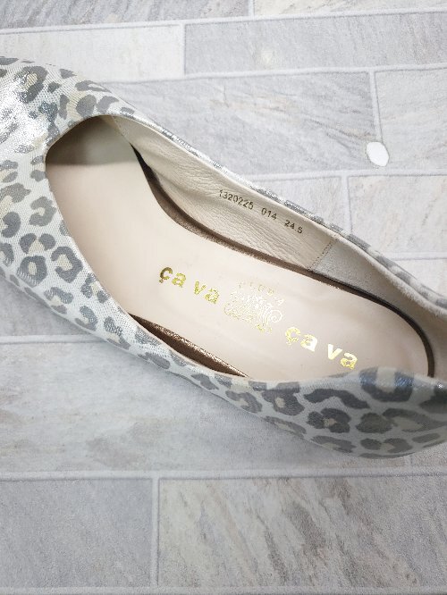 ◇ Θ cava cava サヴァサヴァ フラット 豹柄 レオパード パンプス サイズ24.5cm グレー マルチ レディース P