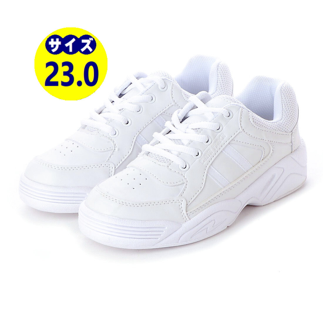 【新品】男女兼用 レースアップ スニーカー『18552-wht-230』コートシューズ ウォーキングシューズ 運動靴 軽量 4E 幅広 通勤 通学