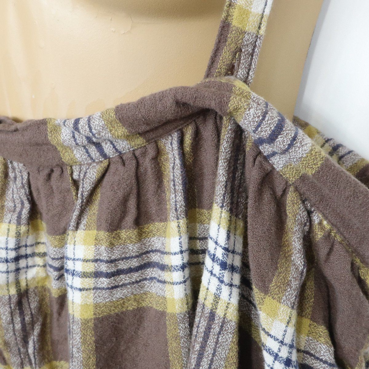 商品説明 | 【実寸約】 ウエスト100 丈86 (cm) 【サイズ表記】 F 【素材】 綿85麻15% 【状態】 普通の使用感のあるお品物 【デザイン】ブラウン×イエロー 落ち着いた色合いがすてきな肩ひも付きフレアスカートです。 肩ひもはボタンで取り外し可能。 着回しのきく一枚です。 両サイドにポケット付き。 ウエストは内蔵コードで調節も可能です。 |