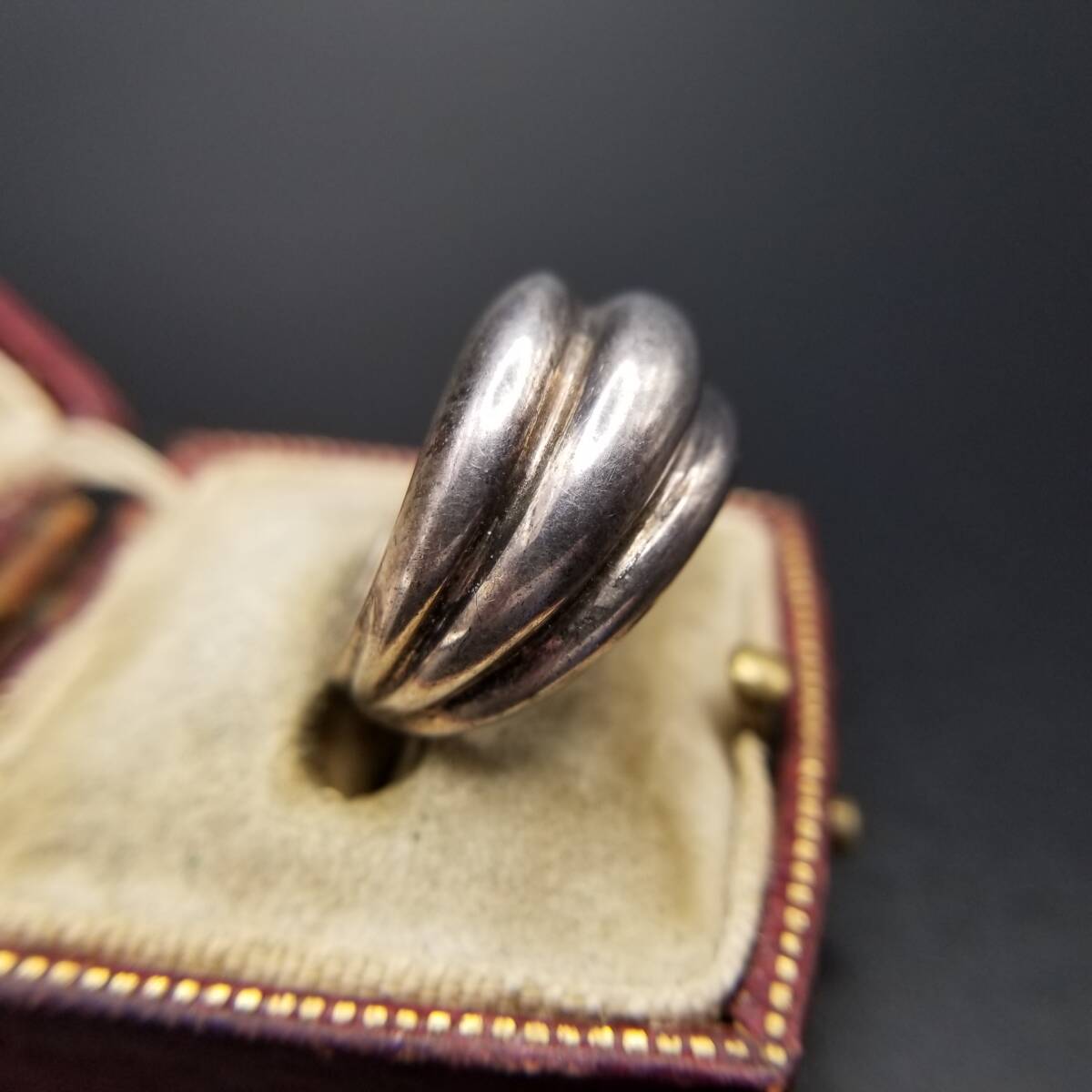 フルーテッドボーダー ぷっくり感 3連 925 シルバー ヴィンテージ リング 銀 指輪 ユニセックス スタイリッシュ Y19-K