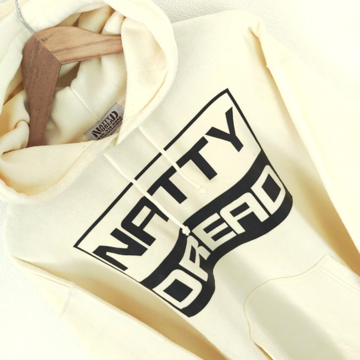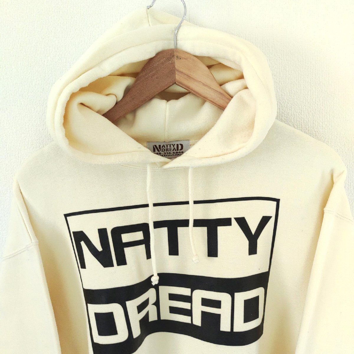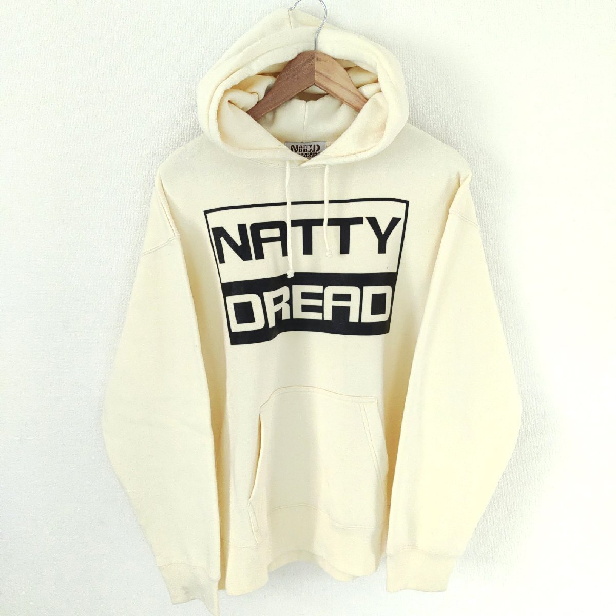 (^w^)b NATTY DREAD ナッティ・ドレッド 長袖 フード スウェット トレーナー プルオーバー フーディー ビックロゴ アイボリー 白 XL 9822DD