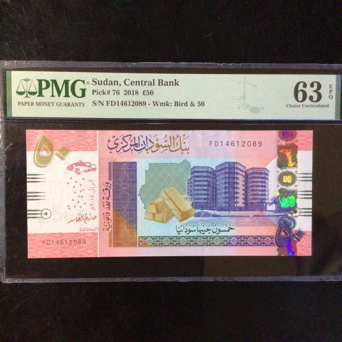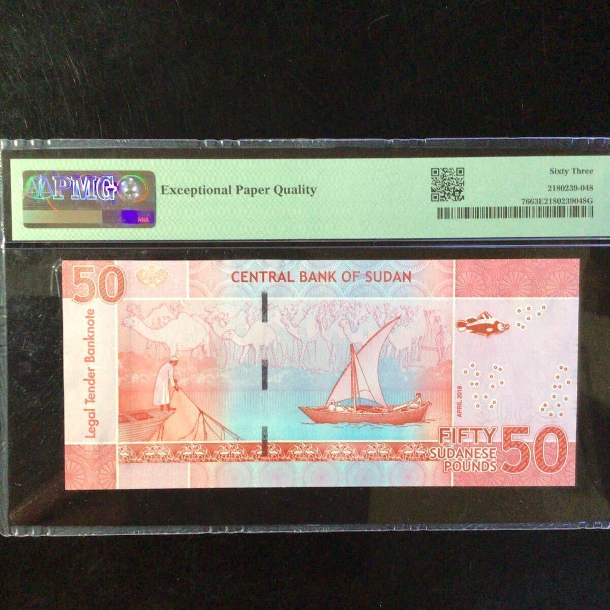 スーダン《中央銀行》50ポンド【2018】『PMGグレーディング鑑定 未使用 63 EPQ』*状態表示については、個人によって多少の違いがありますが画像にて判断し納得して頂ける方のみ入札して下さい。