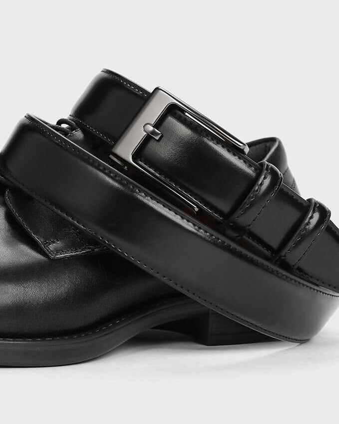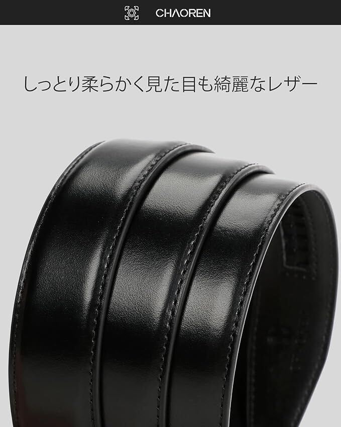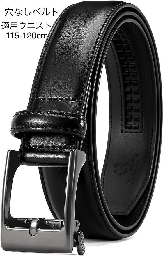 ベルト メンズ ビジネス スラックス スーツベルト - 軽いバックル メンズベルト 穴なし 無段階 32mm - 紳士用ベルト 革 大きいサイズ カジュアル ボックス付き