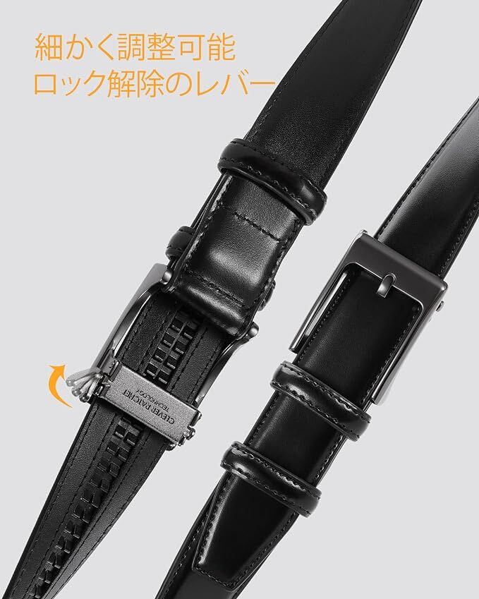 【ワンタッチで着脱】レバーを上に上げ、何度でも簡単に解除出来ます。締めやすくて外しやすい、快適な着用感を楽しめる紳士ベルトです。ワンタッチでロック解除でき、スムーズ、ストレスなしです。