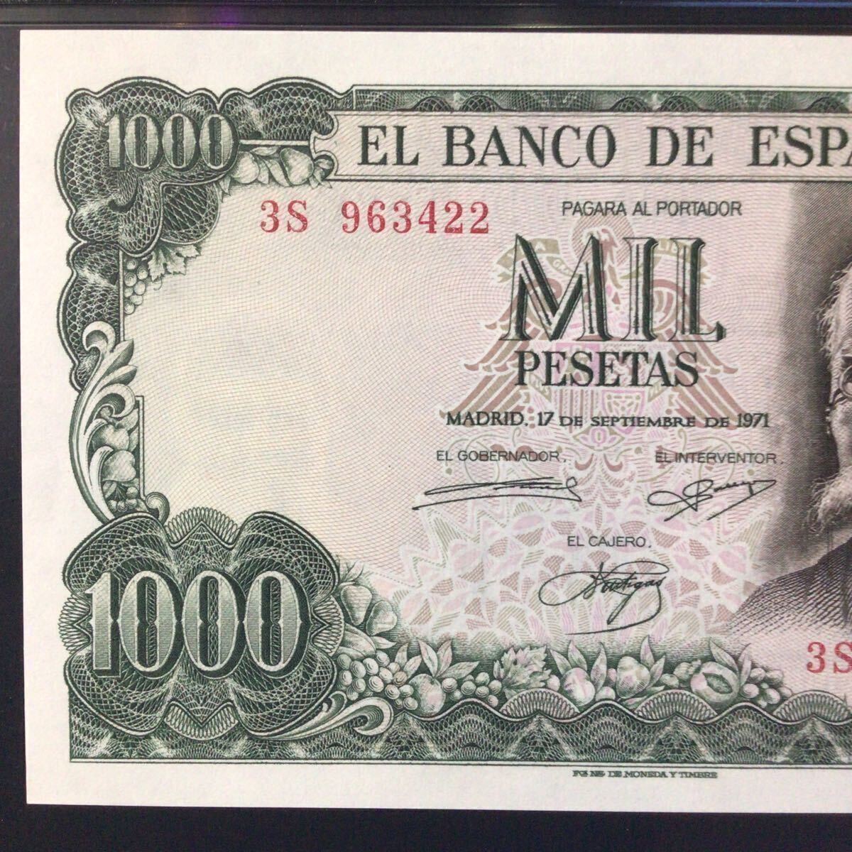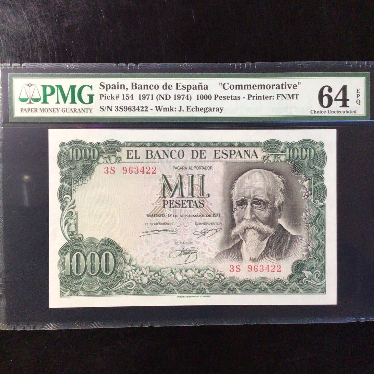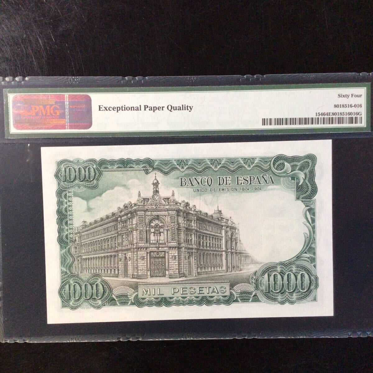 スペイン《スペイン銀行》1000ペセタ【1971】『PMGグレーディング鑑定 未使用 64 EPQ』*状態表示については、個人によって多少の違いがありますが画像にて判断し納得して頂ける方のみ入札して下さい。