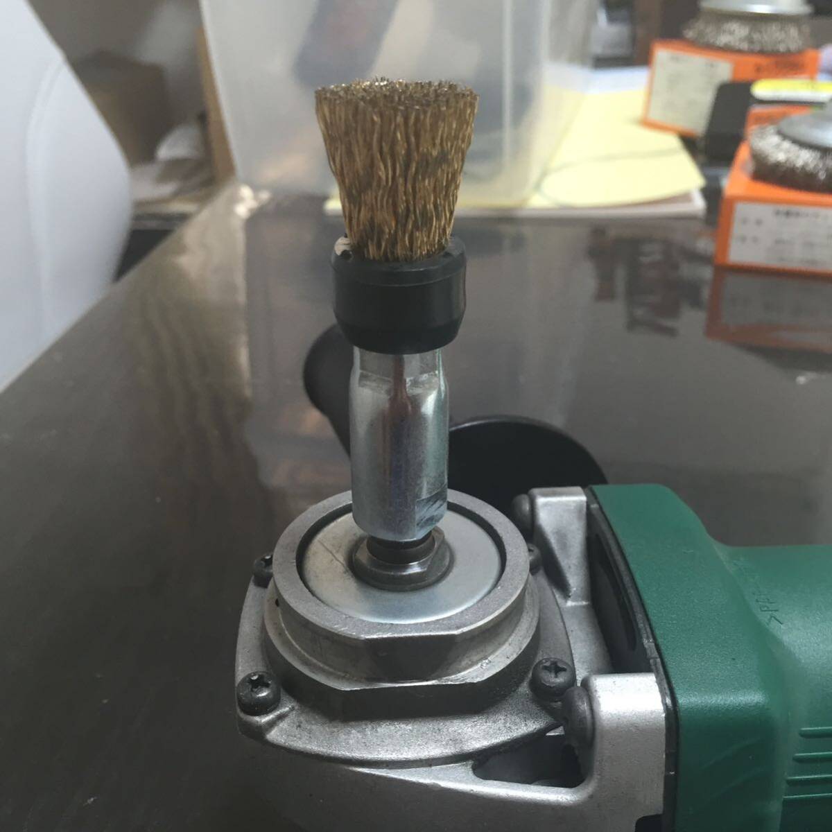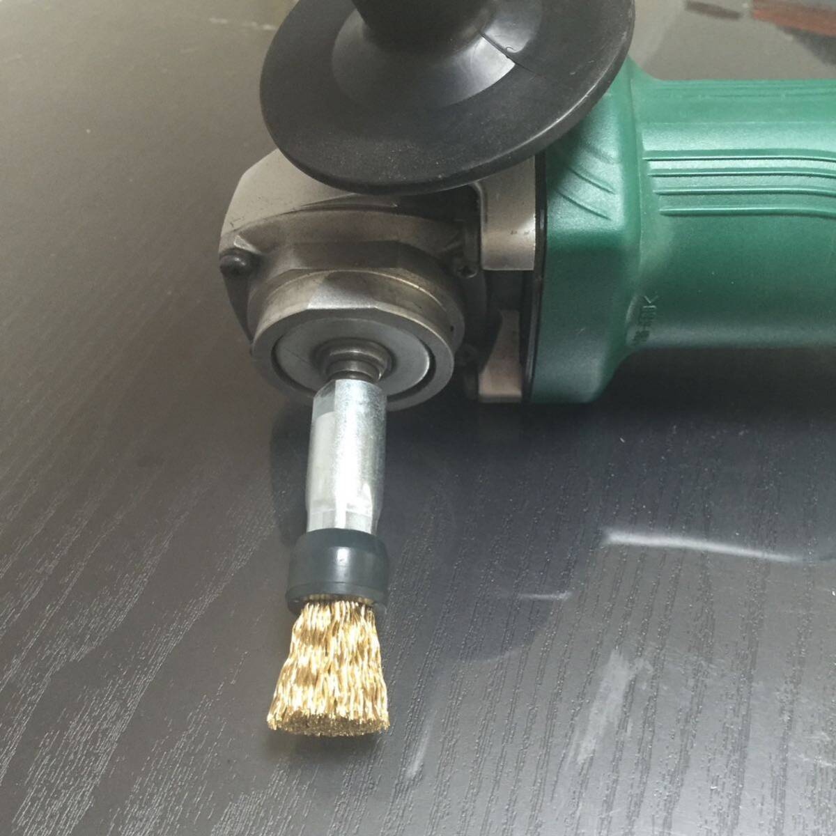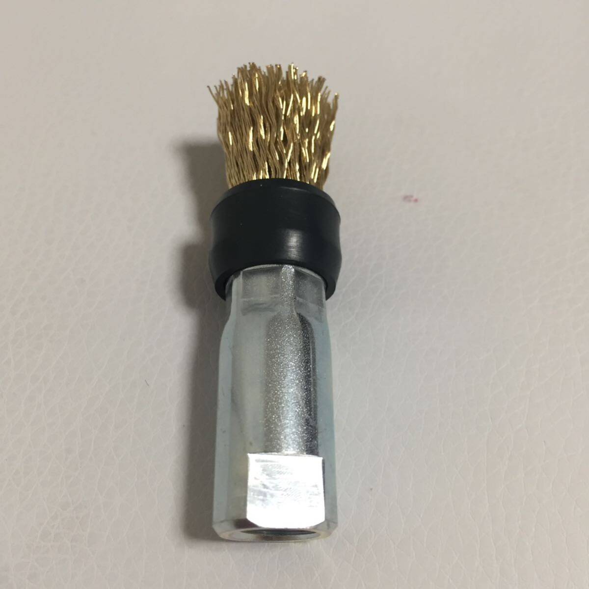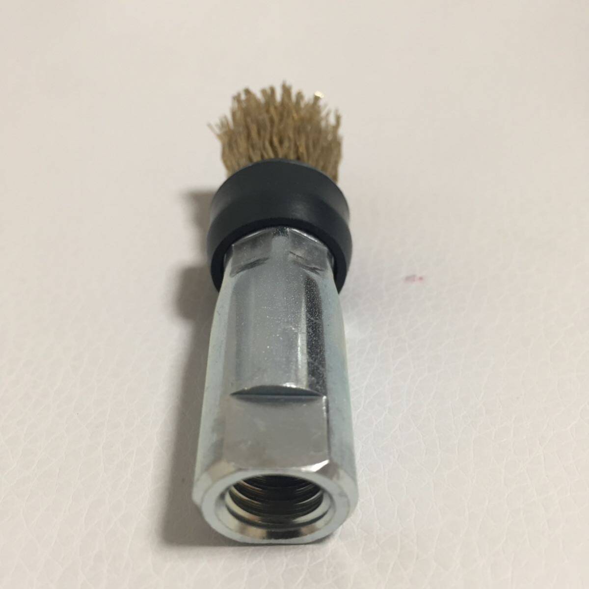 金具内部に、M10×P1.5 の内ネジが切られていますので、100mm 電気ディスクグラインダー に装着して使用出来る筒型ワイヤーブラシです。