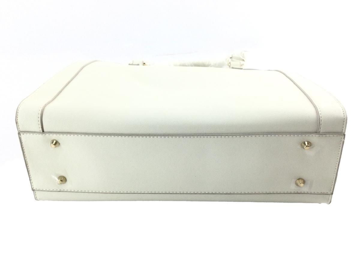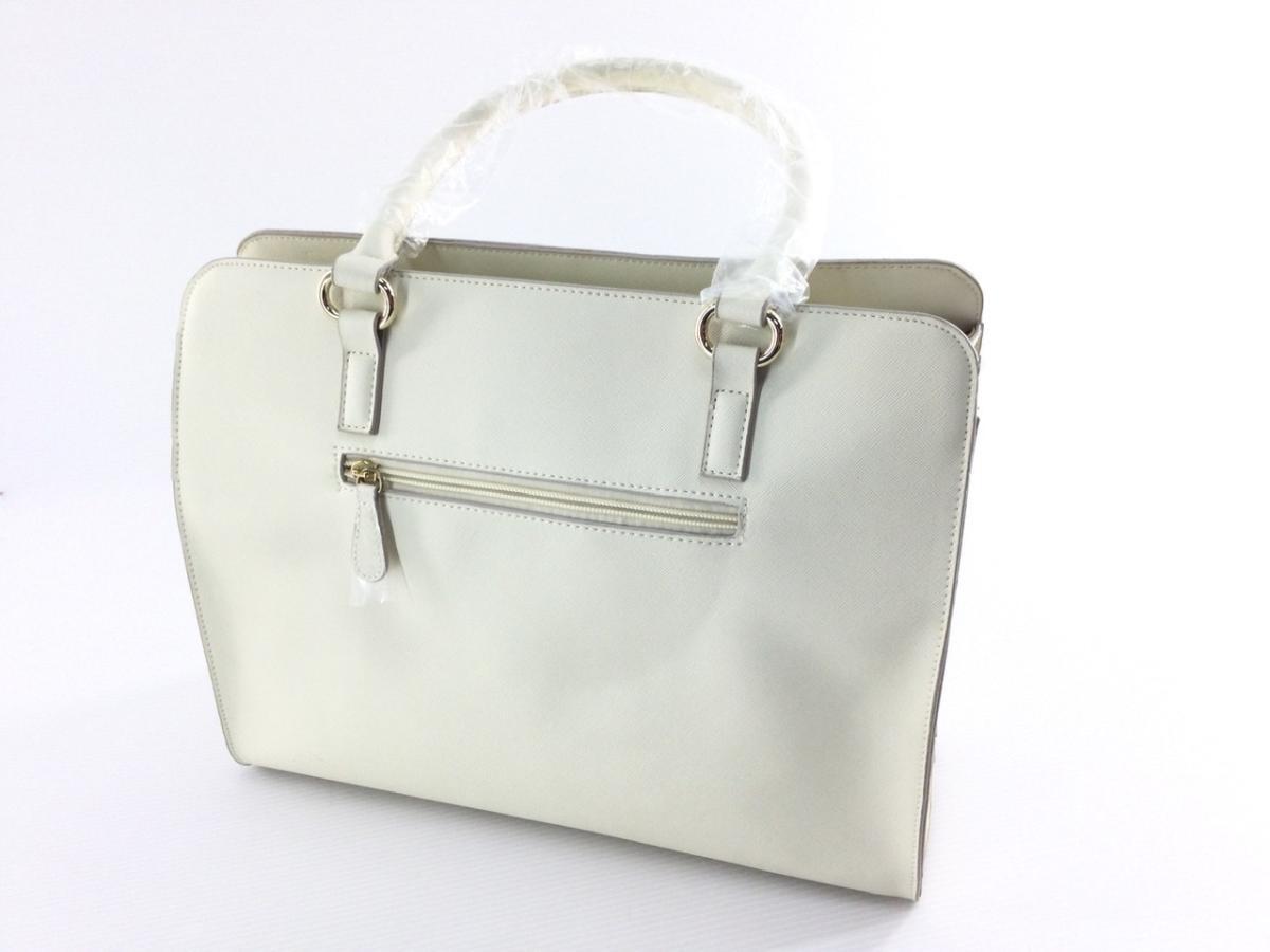 シンプルで洗練されたデザインが特徴のリボンチャーム付きバッグです。