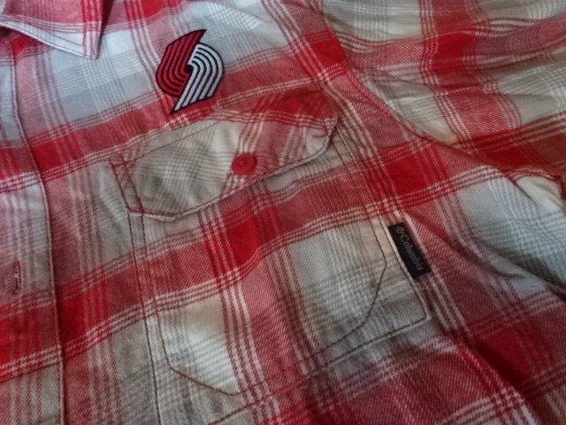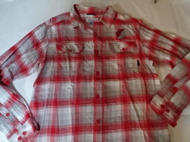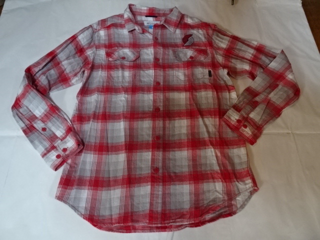 激レア USA購入 アウトドア コロンビア【Columbia】x NBAバスケ【PORTLAND TRAIL BLAZERS】 ロゴ刺繍入り ロングスリーブシャツUS M 中古品
