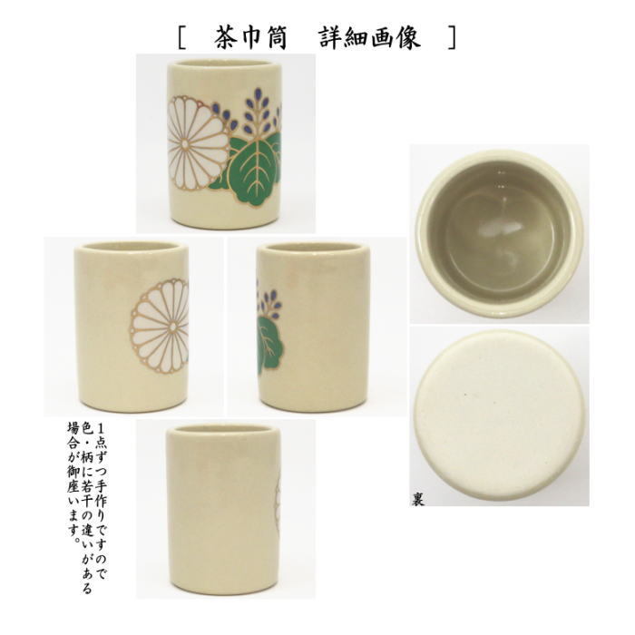 | サイズ | 抹茶茶碗:約直径11.4×高7cm 振出:約直径6.6×蓋除く高6.9cm 茶巾筒:約直径4.1×高5.6cm  |