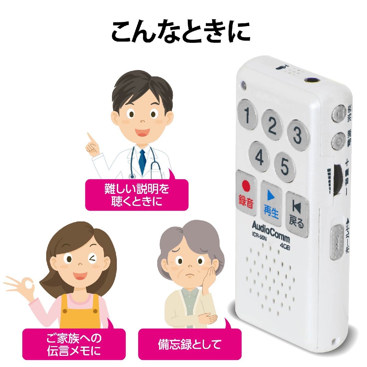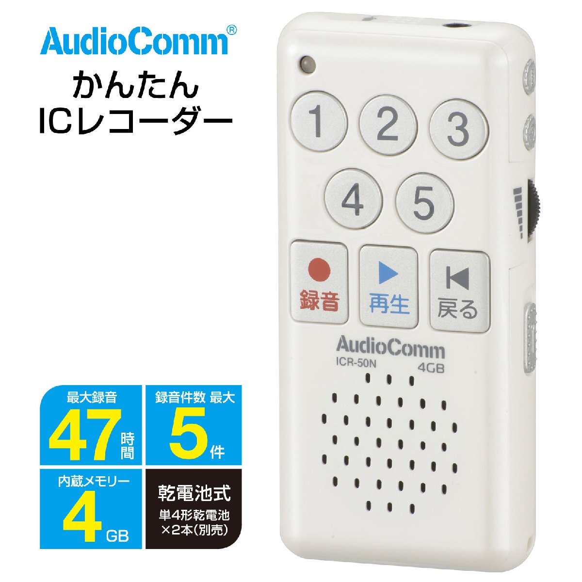 ■ 録音可能時間:最大47時間(5つの番号ボタン合計)