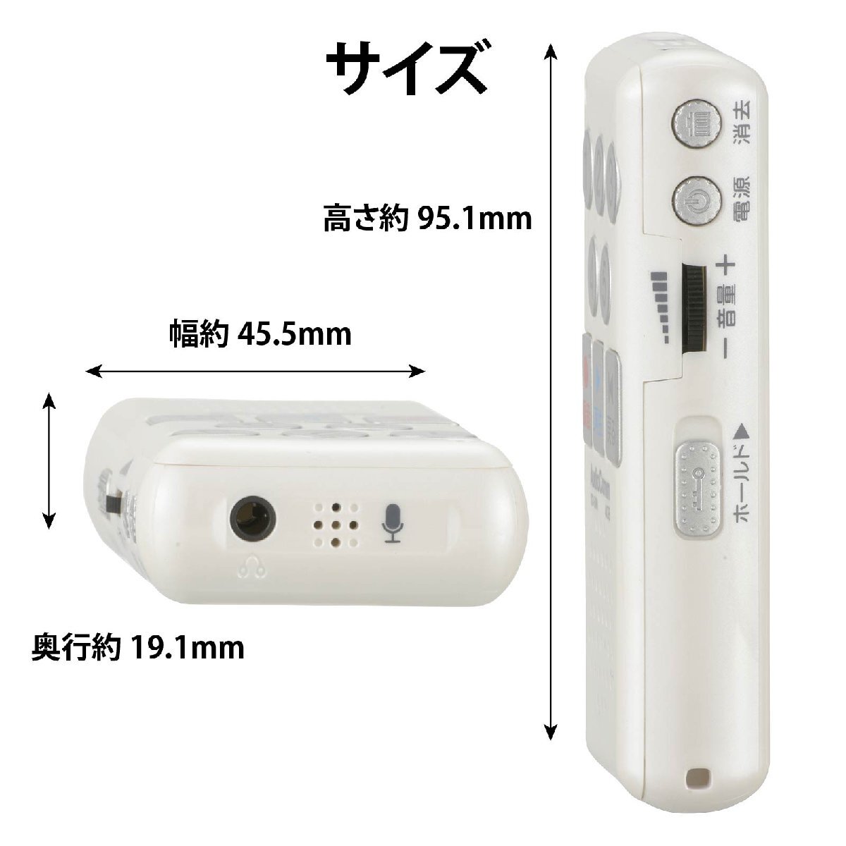 ■ 外形寸法:幅45.5×高さ95.1×奥行19.1mm(突起物を除く)