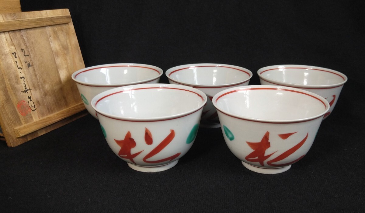 4代目須田菁華(1940-)先生の、清楚で上品な質感の煎茶碗5客組でございます。素人採寸で申し訳ございませんが、径9.1cm、高さ5.6cmでございます。