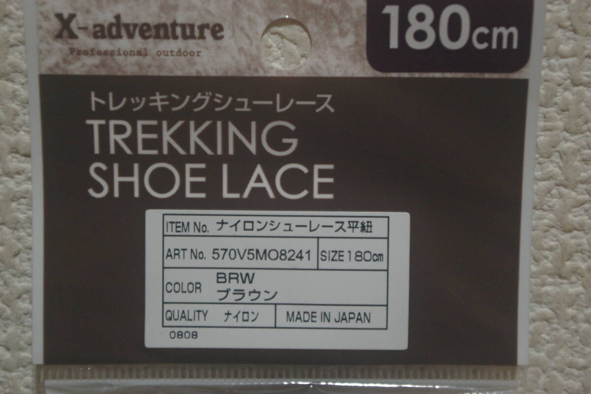 X-adventure 570V5MO8241 トレッキングシューレース  TREKKING SHOE LACE ナイロンシューレース  平紐 180cm BRW ブラウン 未使用品 です。