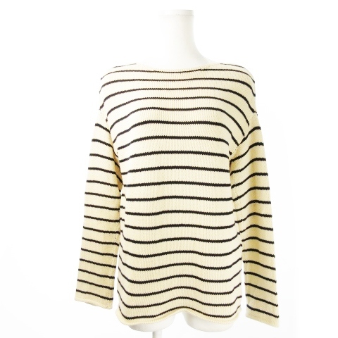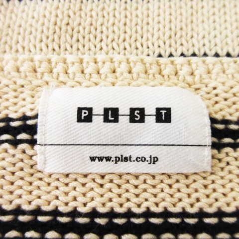 プラステ PLST カットソー ニットソー ボートネック 長袖 コットン くったり ボーダー 2 ベージュ /CK26 レディース
