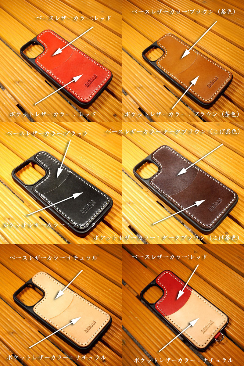画像の右下のケースの様にベースレザーカラーとポケットレザーカラー