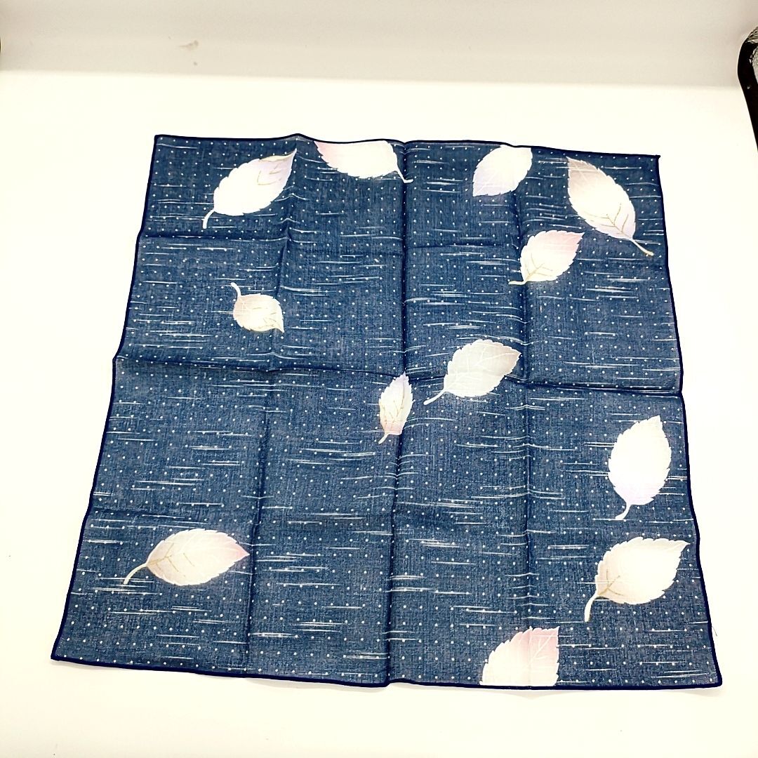 【美品】ハンカチ バンダナ ネイビー×ライトパープル×ライトピンク×ゴールド ドット柄 リーフ柄 植物【送料無料/匿名配送】