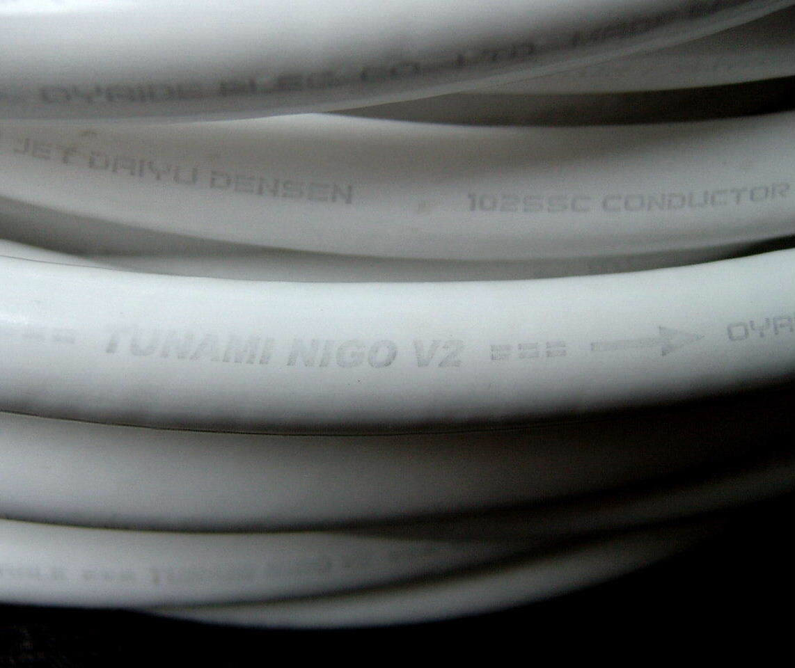■5.5スケアもの極太導体によるハイパワー伝送と、厳重な3レイヤーシールディングによって、スピーカーケーブルに一石を投じた初代“TUNAMI NIGO”。