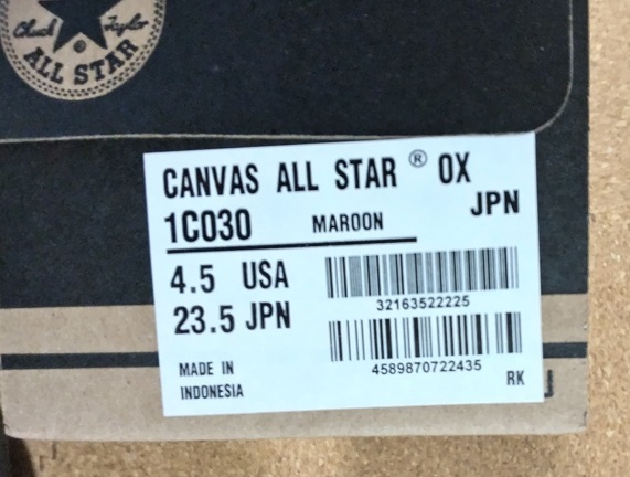 中古品 CONVERSE コンバース ALLSTAR オールスター キャンバス 1C030 maroon 23.5cm ローカット 赤紫色