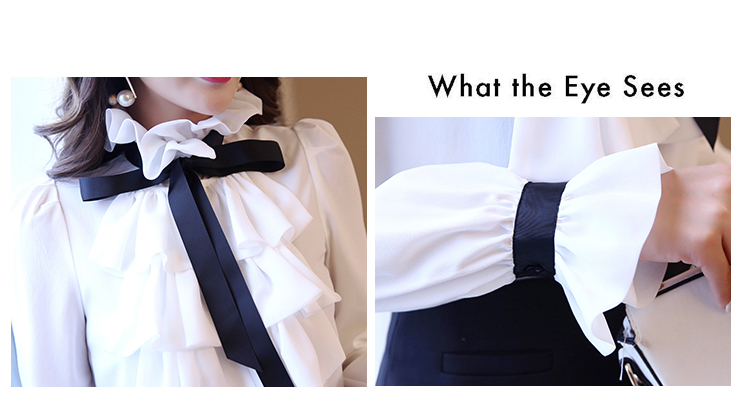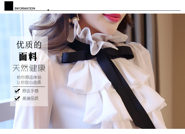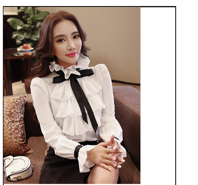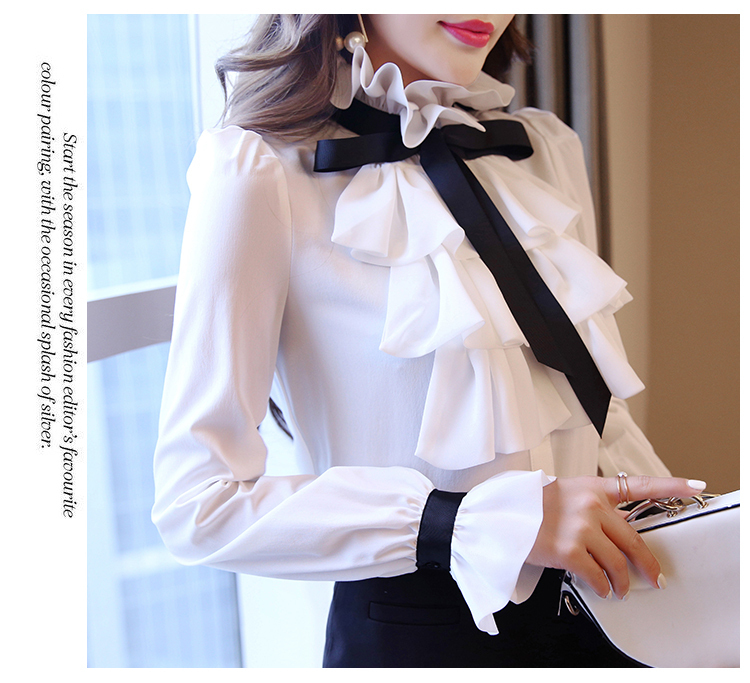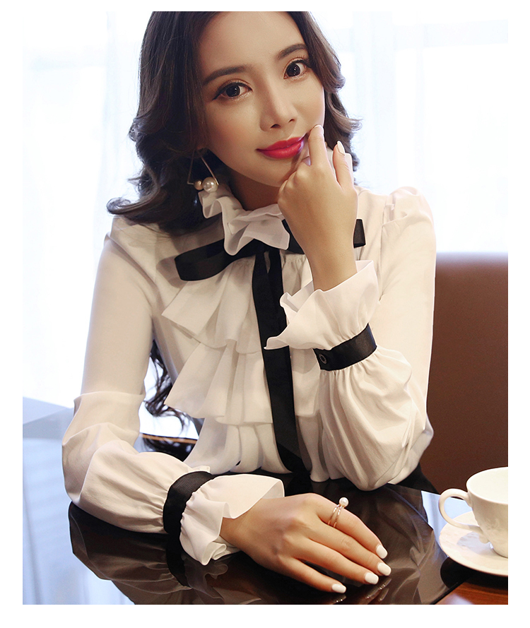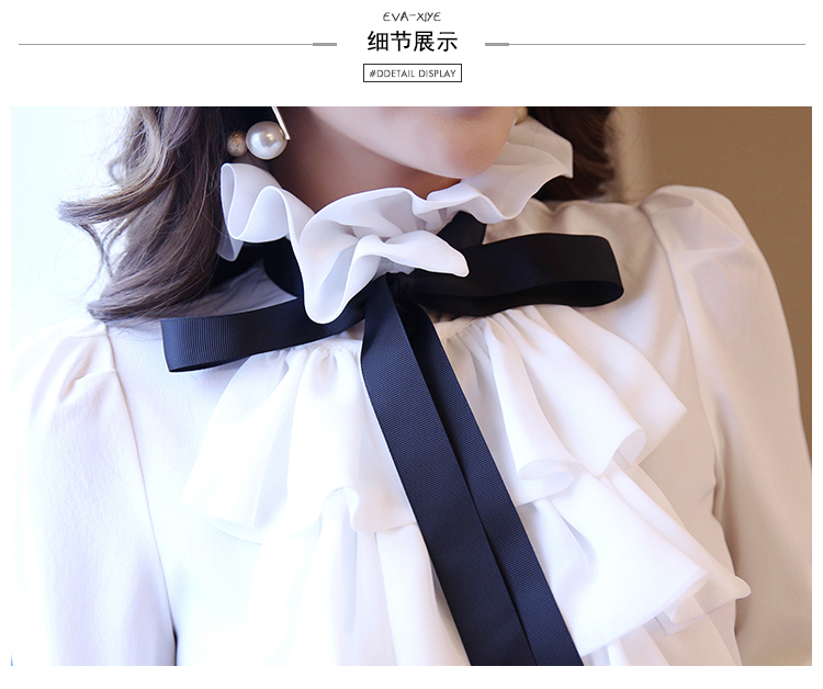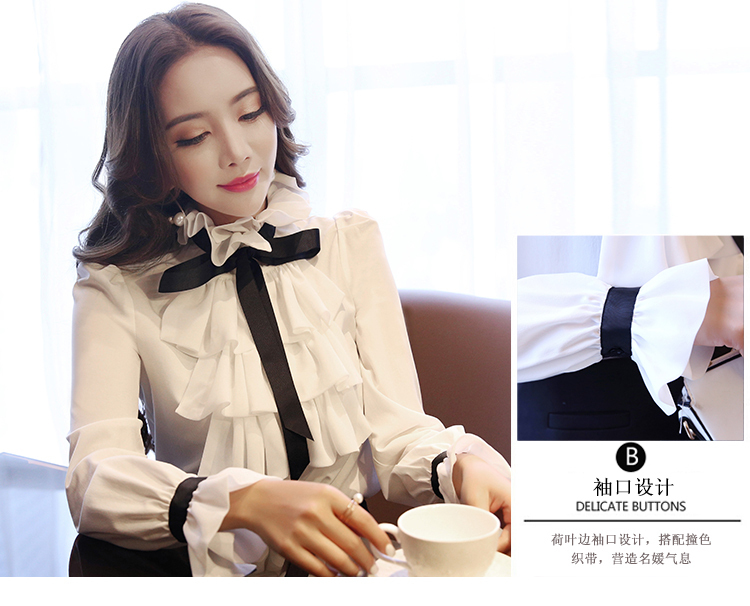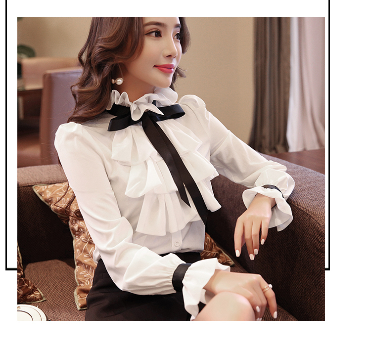 LDL297#大きいサイズ 黒リボン シフォン フリル ラッフル ブラウス XXL