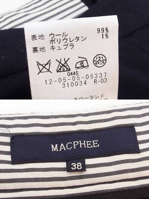 サイズ ( cm ) | サイズ表記 : 38 ・ ウエスト(平置) ・ 着丈 |